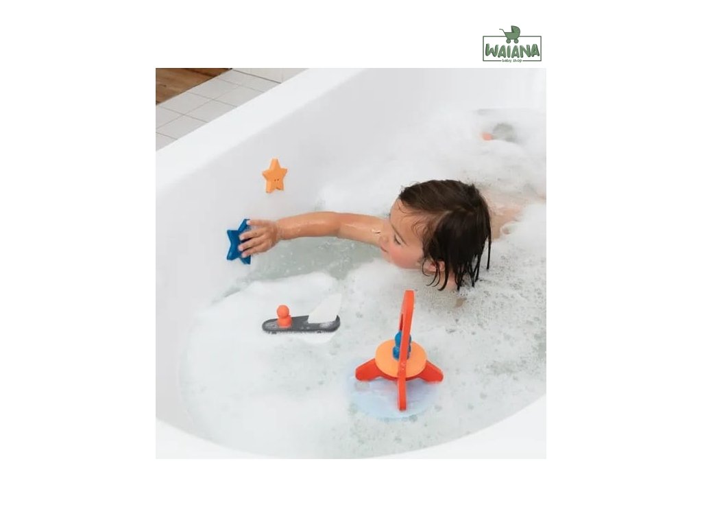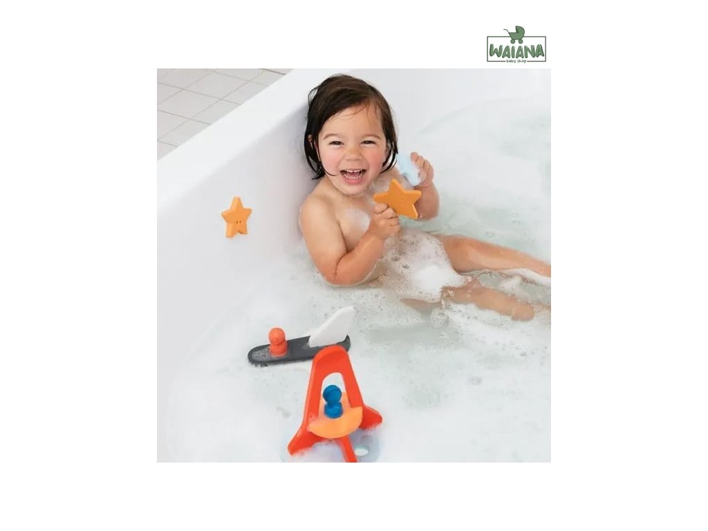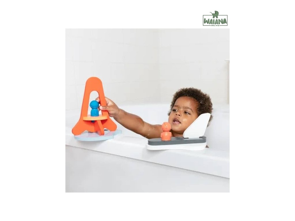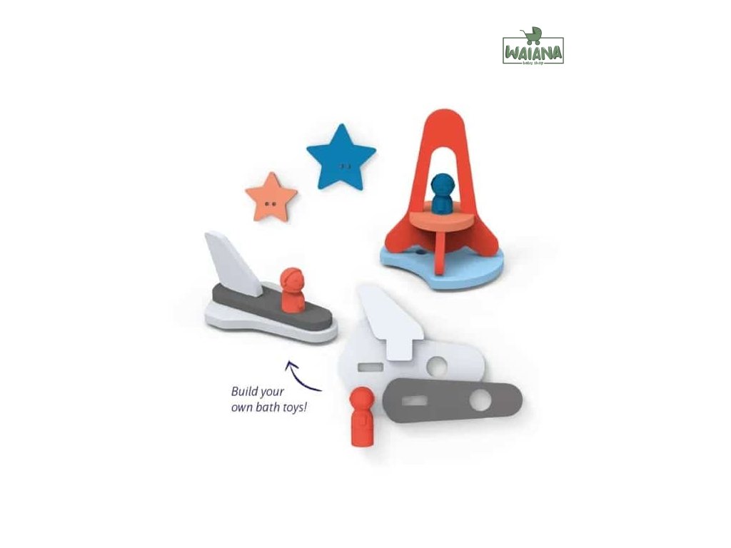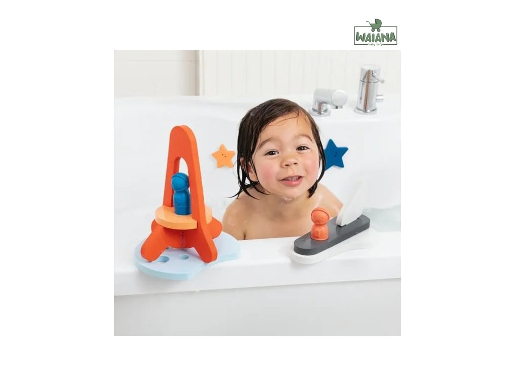 Puzzle do vody Na Mesiac a naspäť, vyrobené z mäkkej peny EVA. Bez obsahu BPA, ftalátov a latexu, recyklovateľné.