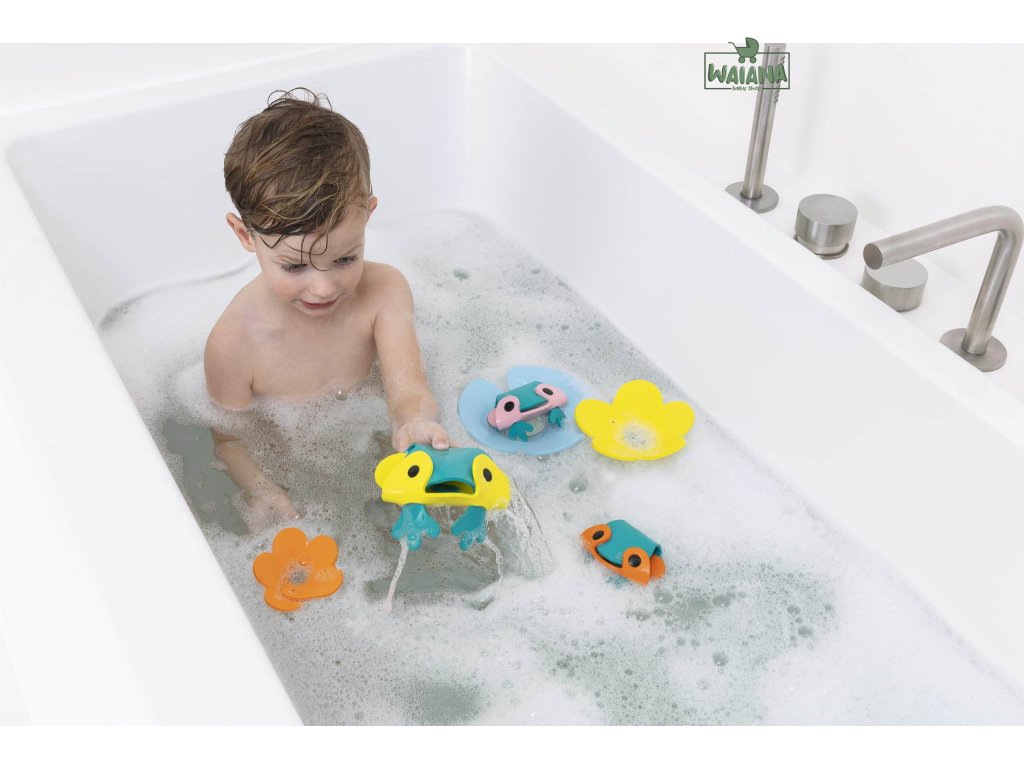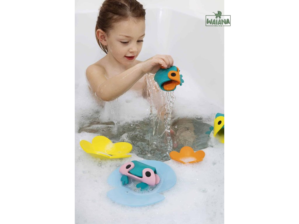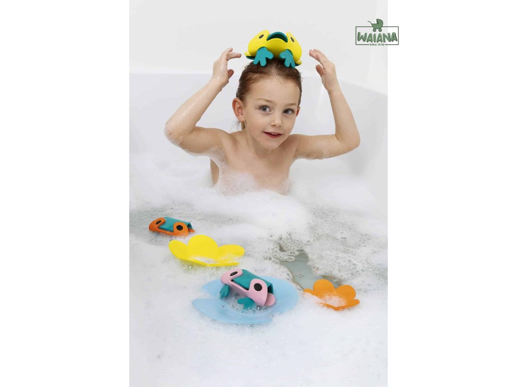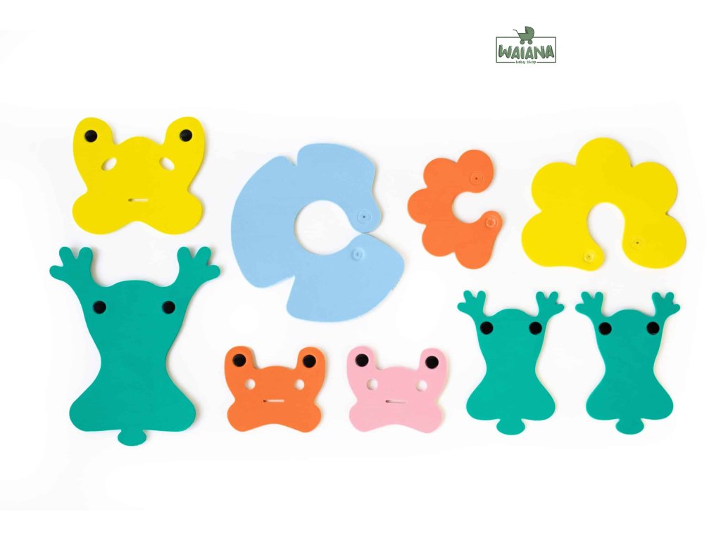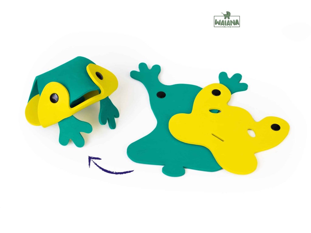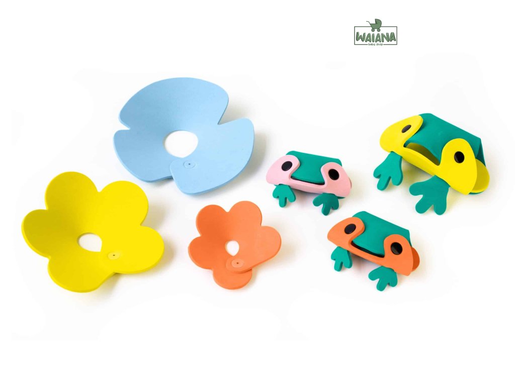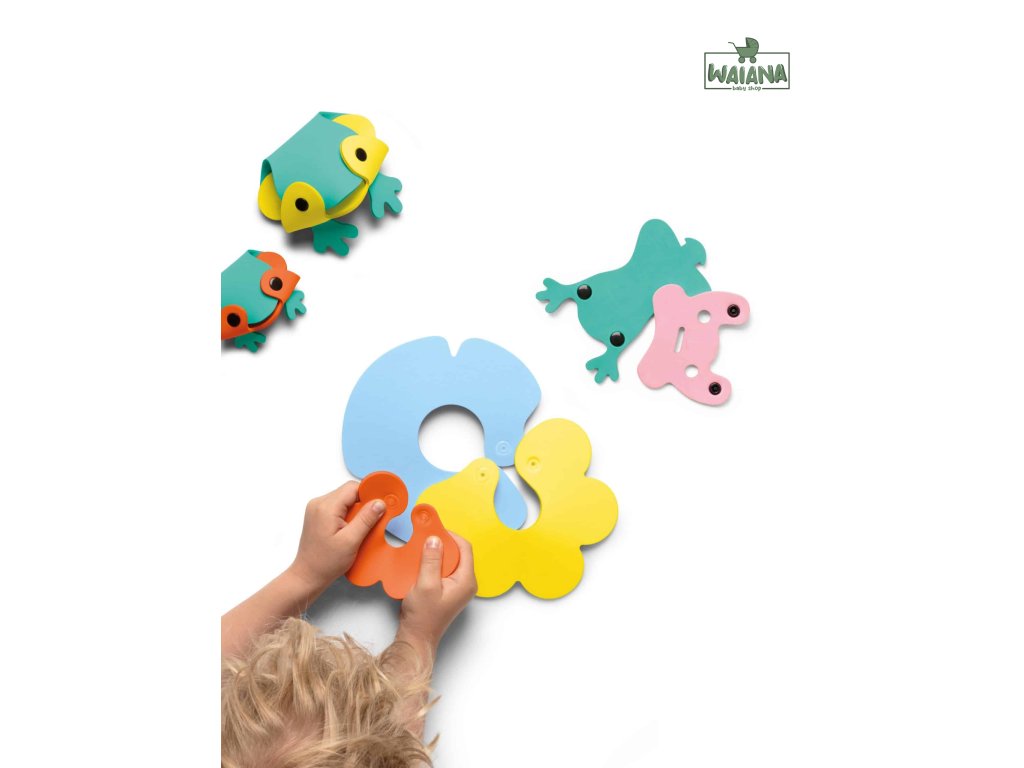 3D konštrukčná hračka do vody Žabí rybník, vyrobená z mäkkej peny EVA. Bez obsahu BPA, ftalátov a latexu, recyklovateľné.