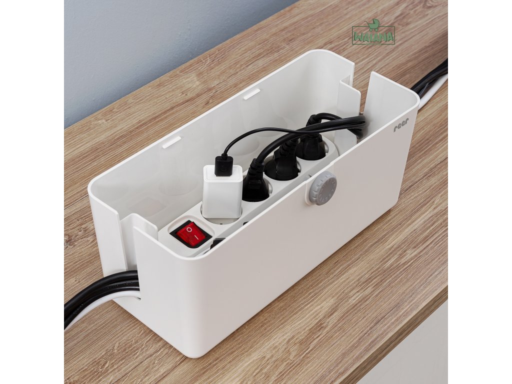 Box na kabely pomáhá přinést do vaší domácnosti řád a se štědrými rozměry 30,5 x 13,5 x 13,5 cm je vhodný pro 3 a 4cestné rozbočovače s přepínači a velkými adaptéry. Kabelové průchodky ve víku umožňují snadné nabíjení mobilních telefonů a tabletů bez nutnosti neustálého hledání správných kabelů.
