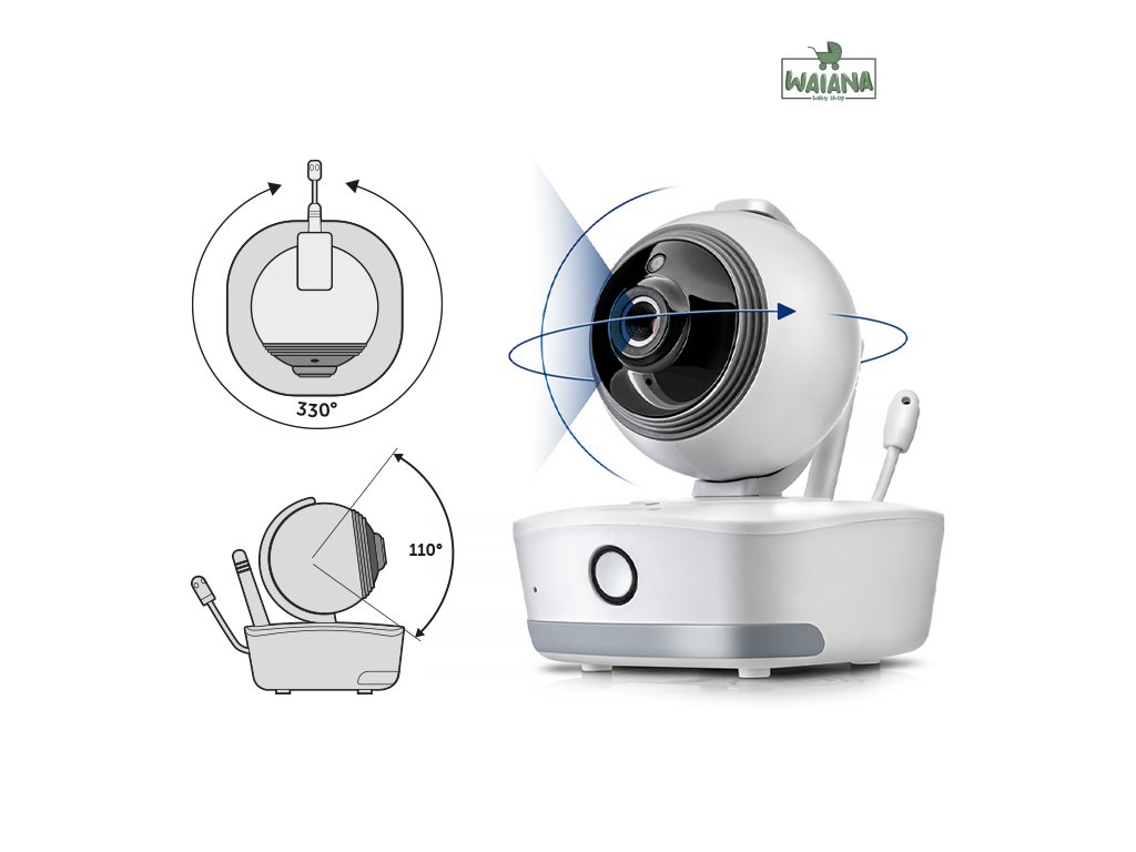 Pohybující se kameru lze plynule otáčet o 330 ° a naklánět až o 110 °. Tento panoramatický pohled umožňuje prohlížení velkých ploch a vy máte svého drobečka vždy na dohled. Díky stojanu s nástěnným držákem lze IP BabyCam Move snadno umístit na zeď, na strop nebo na stůl.