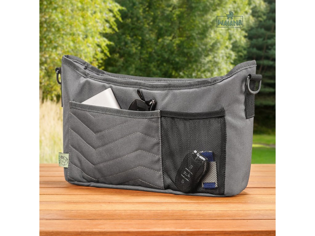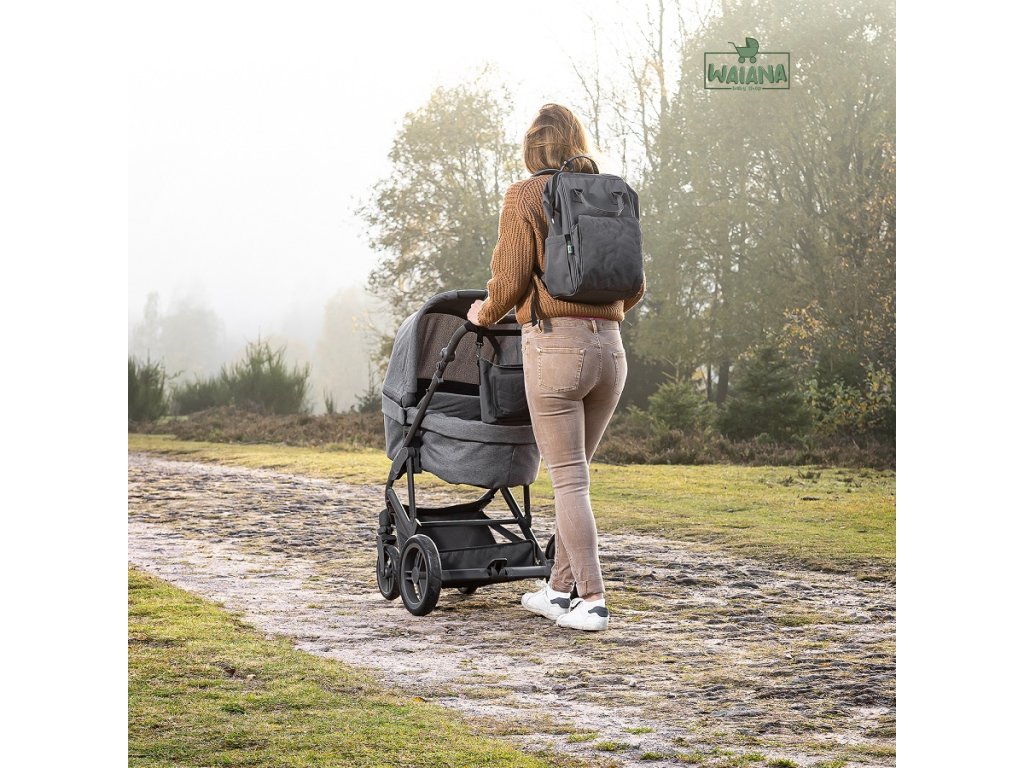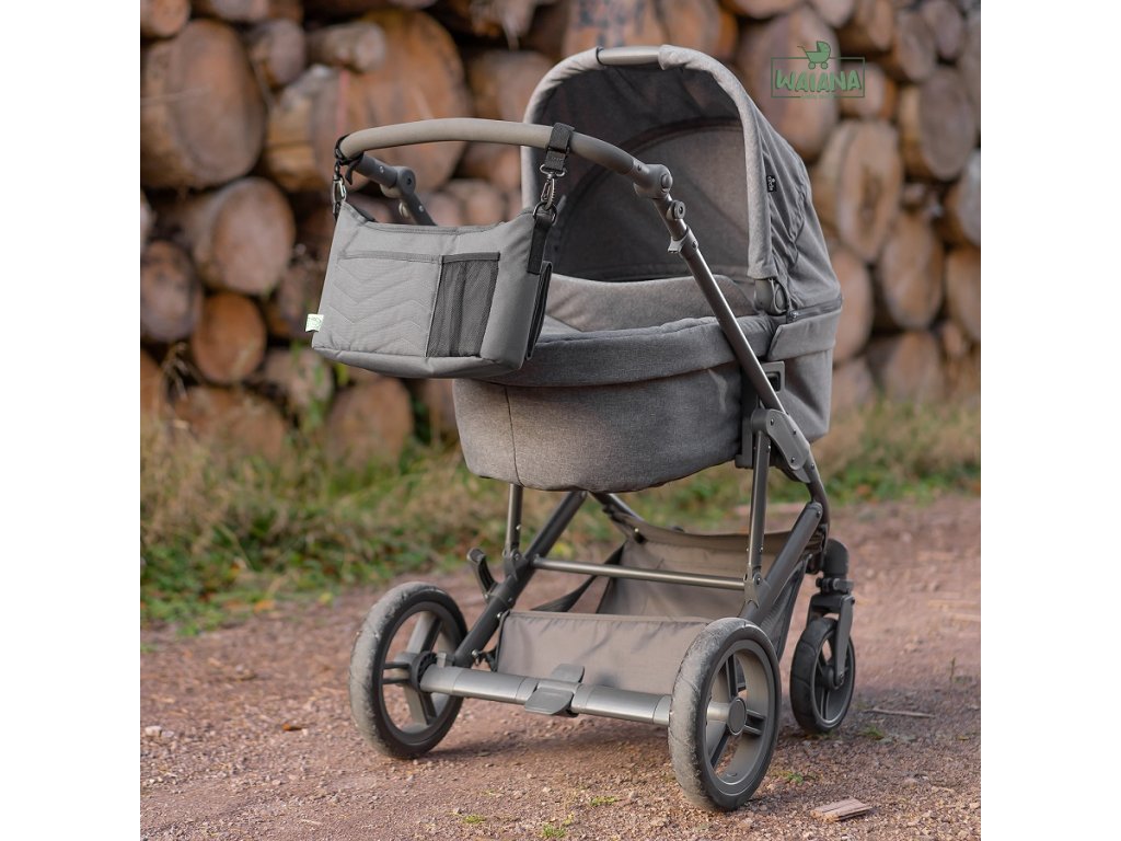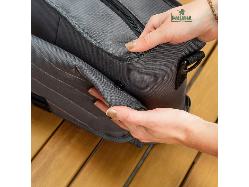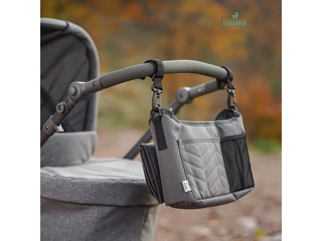 Organizér lze snadno připevnit ke kočárku. Jakmile si však kočárek nemůžete vzít s sebou, například proto, že si chcete s dítětem udělat krátkou pauzu v kavárně, lze tašku snadno přepravovat i bez kočárku. Díky délkově nastavitelným popruhům lze tašku nosit na jedné straně
