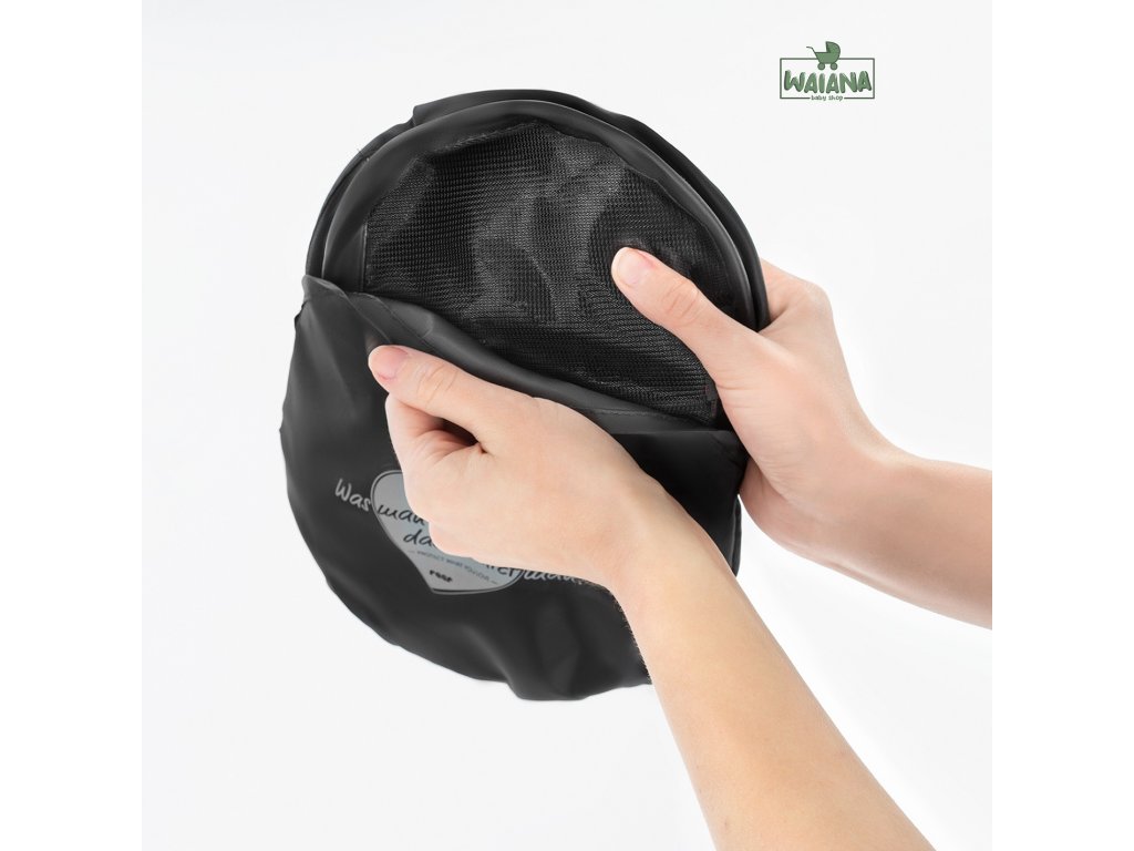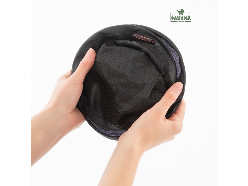 Ochranu proti slunci lze rychle a snadno složit, pokud ji za zamračeného dne nepotřebujete. To se děje ve třech jednoduchých krocích: Chcete-li to provést, musíte jednu stranu otočit o 180 °, aby se vytvořily dva kruhové konce. Tyto dva kruhy jsou poté vtlačeny do sebe a poté vloženy do úložného vaku, který jim brání v opětovném otevření.