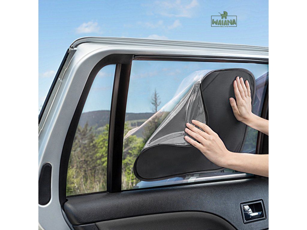 Spolehlivě chrání před přímým slunečním zářením a škodlivými UV paprsky (UPF: 50+), optimální a snadné uchycení, vhodné pro většinu oken automobilů, pevné držení díky samolepicí fólii.