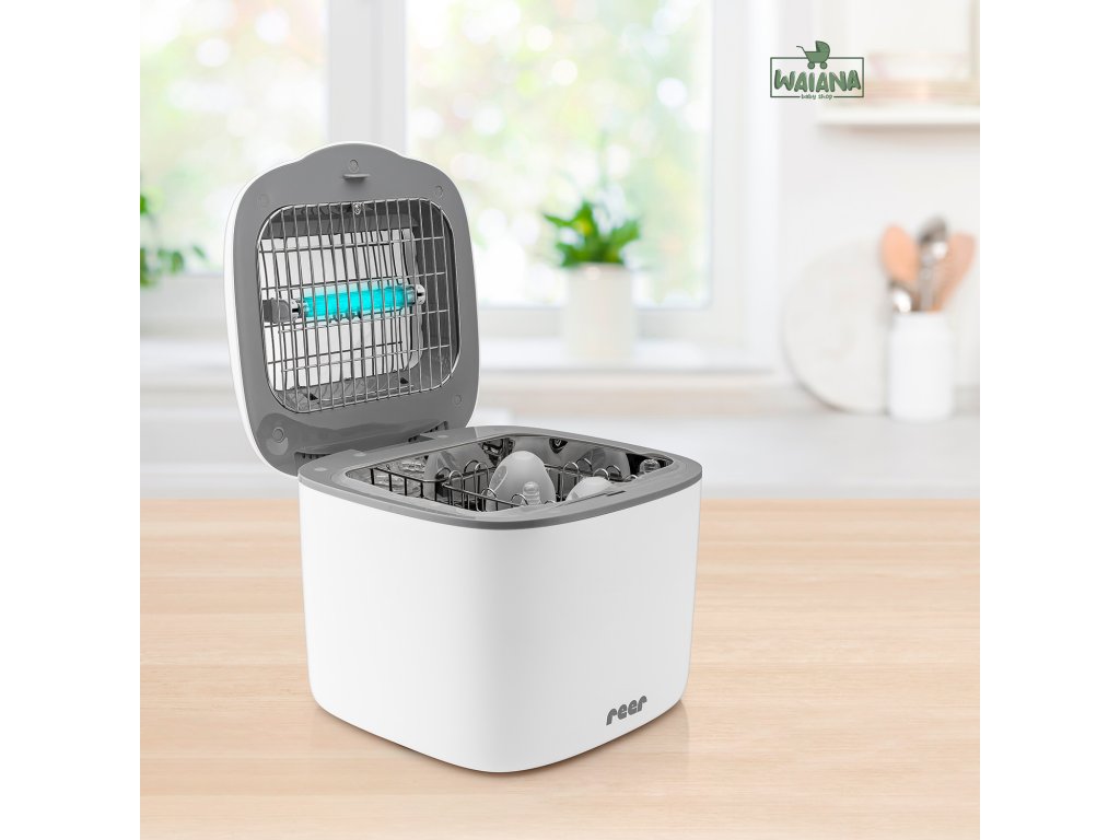 - bezpečný a jednoduchý způsob dezinfekce UV lampou; bez chemikálií a vody (bez rizika opaření)