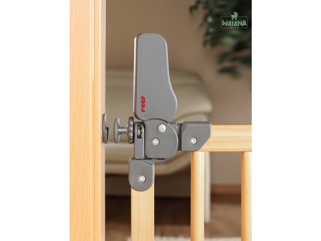 - Simple-Lock: duální uzamykací systém; Zatlačte dolů klip západky, zvedněte zábranu k otevření; odolný pro děti, ale pro dospělé snadno ovladatelný jednou rukou