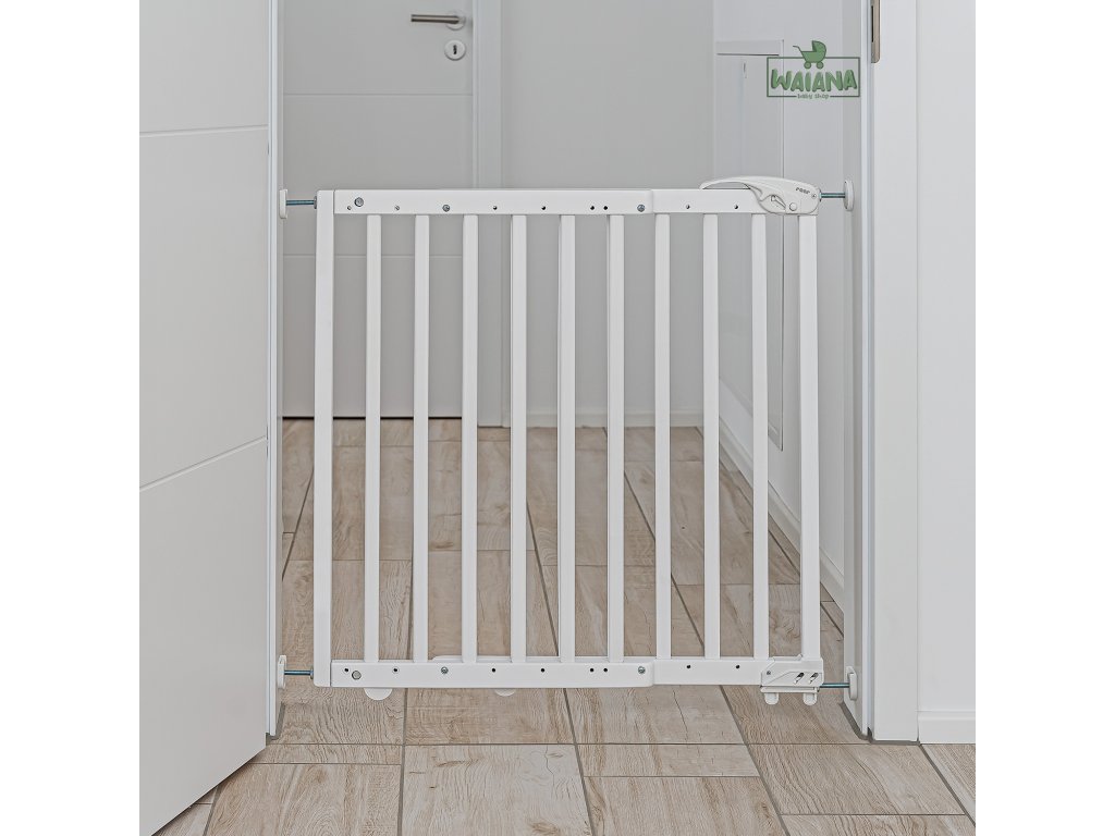 Praktický modulární princip: snadná montáž za méně než 10 minut díky zásuvnému systému. Malá a praktická velikost balení chrání životní prostředí díky o 60 % méně odpadu z obalů. 2 možnosti montáže: tlakově rozpěrná nebo šroubováním. Bezbariérový průchod bez nebezpečí zakopnutí: ideální pro použití i na schodech. Šířka plynule nastavitelná 63-106 cm. Dvojitý uzamykací systém. Lze pohodlně otevřít v obou směrech. Lze flexibilně použít jako dveřní nebo schodišťovou zábranu.