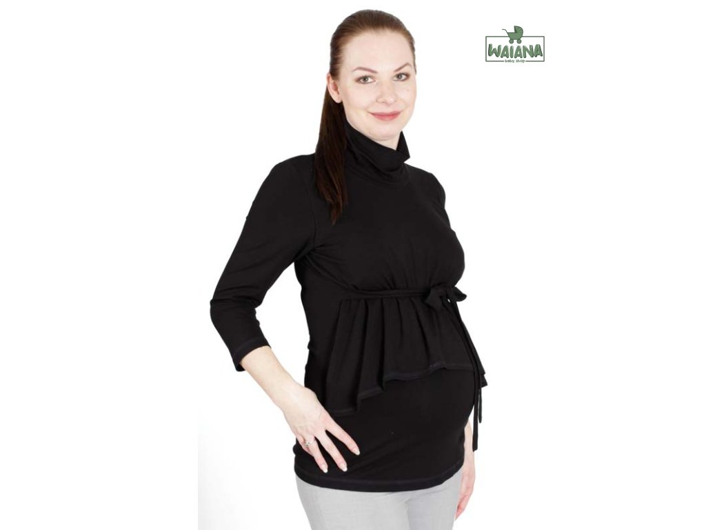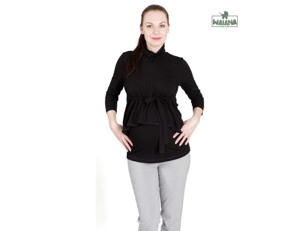 Nápadité, elegantné a ľahko extravagantné tehotenské a dojčiace tričko s voľným rolákom a 3/4 rukávmi. Toto tričko je vhodné pre ženu, ktorá vďaka nemu zažiari ako v práci tak aj na rôznych akciách. Je vyrobené z veľmi príjemného viskózového materiálu.