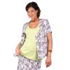 Tehotenský kabátik s krátkym rukávom, vreckami a výstrihom do V. Zapínanie je na gombíky. Predný diel je pod prsiami prestrihnutý a na spodných dieloch sú odšité záhyby pre voľnosť.