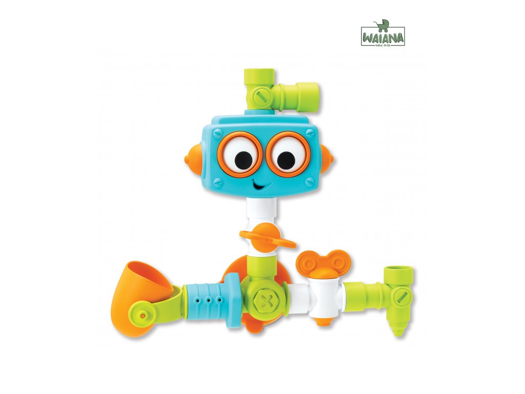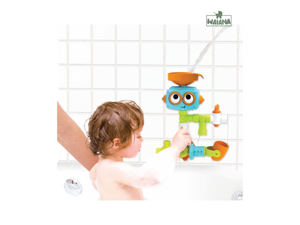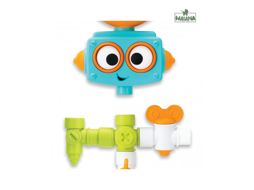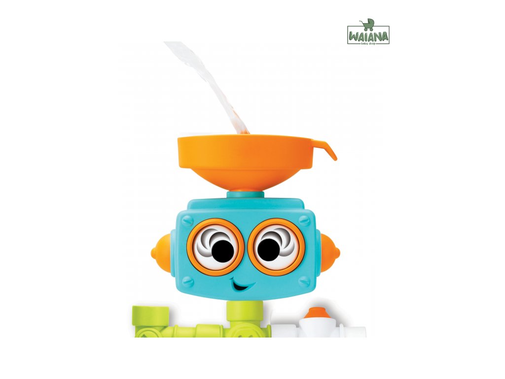 Originálnu hračku pre hranie s vodou počas kúpania vo vani ľahko zostavíte a pripevníte na stenu s pomocou prísaviek. Po naliatí vody do lievika na hlave robota voda prúdi jednotlivými časťami tela robota a vytvára rôzne vodné efekty. Oči robota sa točia a uťahovaním a povoľovaním skrutiek zmeníte smer, kadiaľ voda prúdi.