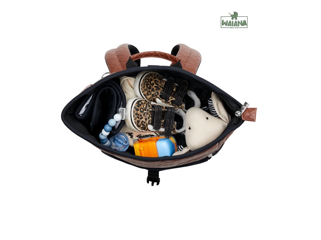 Obsahuje přebalovací podložku, termoobal na láhev, kapsičku na mobilní telefon a poutka na zavěšení na rukojeť kočárku.
