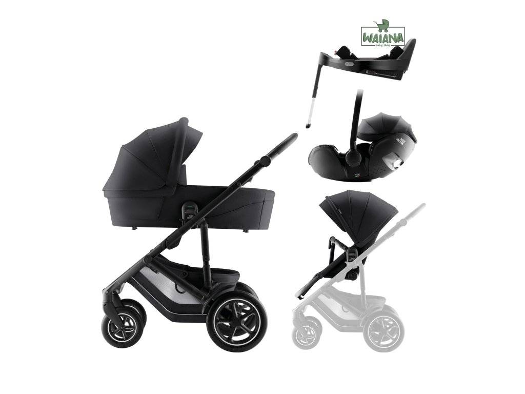 Sada kočíka Smile 5Z + hlboká vanička + autosedačka Baby-Safe PRO + základňa Vario Base 5Z Style, Carbon Black