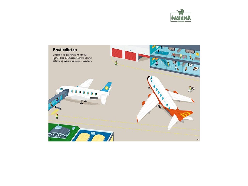 Samolepková knižka Letisko zavedie deti priamo do rušného sveta lietadiel, batožín, pilotov a cestujúcich. Na 16 farebných stranách sa zoznámia s tým, ako to funguje na letisku – od nástupu do lietadla až po vzlet. Deti si pomocou 8 strán samolepiek môžu dotvoriť scény podľa vlastnej fantázie – nalepia lietadlá na vzletovej dráhe, kufre na dopravník alebo pilotov do kokpitu. Zábavná forma učenia podporuje jemnú motoriku, pozornosť a kreativitu.