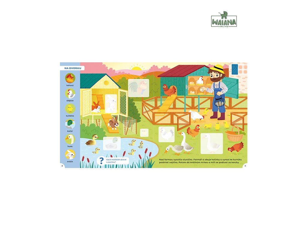 Samolepky pro zvídavé děti FarmaZábavná samolepková knižka pre malých farmárov!Samolepková knižka Farma je ideálna pre malých objaviteľov! Obsahuje 16 farebných strán plných zaujímavých informácií o živote na farme, jednoduché a zábavné úlohy a 2 listy samolepiek, ktoré si deti dolepujú na správne miesta. Okrem učenia sa hrou knižka ponúka aj krátky test znalostí na konci, aby si deti mohli overiť, čo sa naučili. Perfektný spôsob, ako rozvíjať detskú zvedavosť a jemnú motoriku!