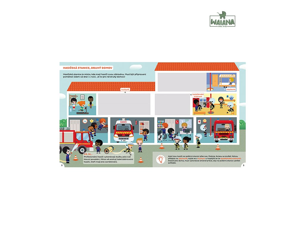 Samolepky pro zvídavé děti HasičiSamolepková knižka plná dobrodružstvaSamolepková knižka Hasiči je ideálna pre všetky zvedavé deti, ktoré fascinujú hasičské autá, zásahy a záchranné akcie! Kniha obsahuje 16 farebných strán plných zaujímavých informácií o práci hasičov, doplnených o jednoduché a zábavné úlohy. Súčasťou sú aj 2 listy samolepiek, ktoré si deti dolepujú na správne miesta. Na konci ich čaká krátky vedomostný test, aby si mohli overiť, čo sa naučili. Perfektný spôsob, ako rozvíjať detskú zvedavosť, jemnú motoriku a hravou formou objaviť svet hasičov!