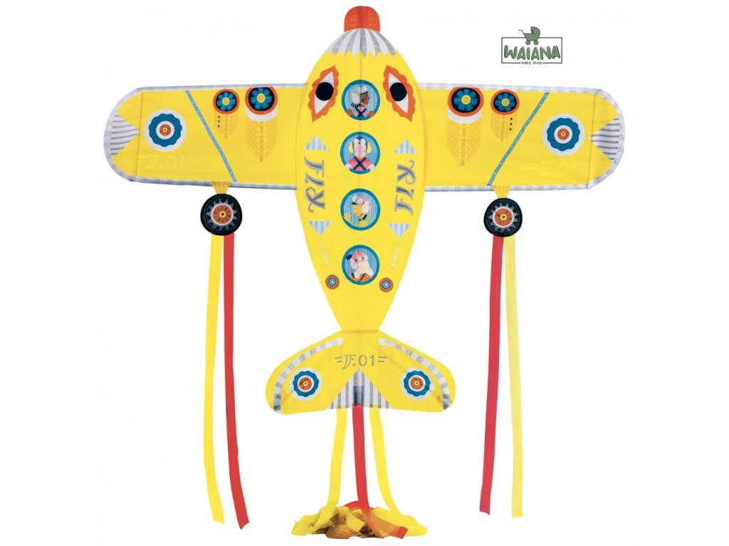 Obrovský šarkan vyzerá na oblohe veľkolepo! Veľký šarkan s dizajnom lietadla v žiarivej žltej farbe je vyrobený z ľahkého odolného materiálu.Vypustite šarkana až 40 metrov vysoko! Keď zafúka správny vietor toto lietadlo vystrelí až 40 metrov vysoko vďaka dlhej šnúre s držadlom. Dá sa jednoducho poskladať, na zadnej strane stačí výstužové palice zasunúť do bočných kapsičiek. Šarkan sa dodáva v textilnom vrecku. Obsah: šarkan, výstužové palice, 40 m šnúra s držadlom, textilné vrecko. Materiál: polyester, sklené vlákno (palice). Rozmery šarkana: 122 cm (Š) x 88 cm (V) x 250 cm (dĺžka chvosta).