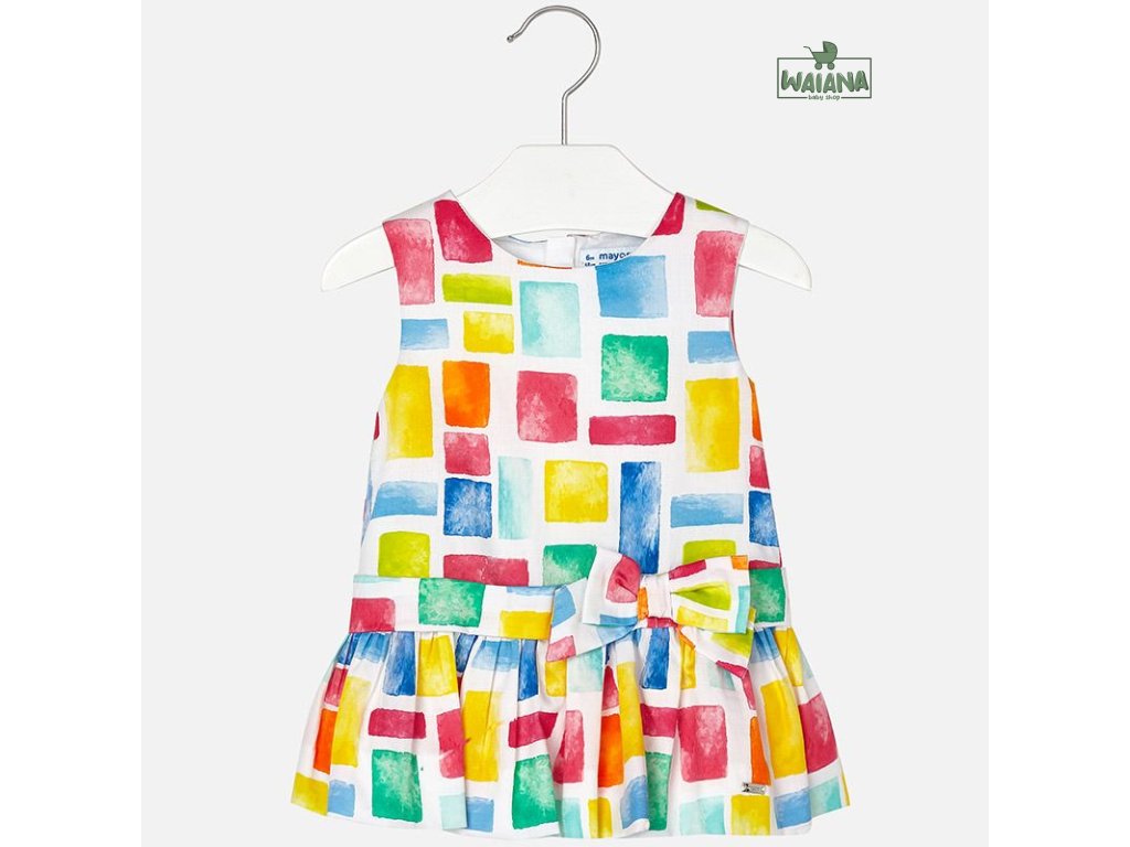 Krásné bílé šatičky pro malou parádnici od kvalitní španělské značky MAYORAL. Kostkované šatičky s krásnou mašlí.