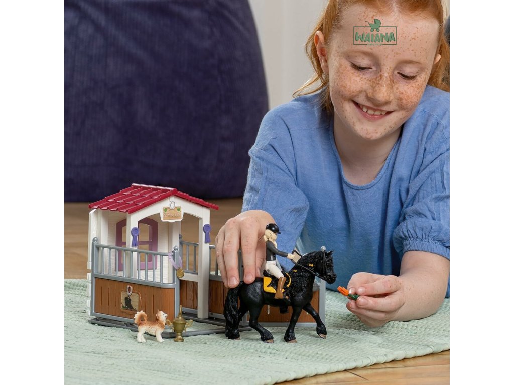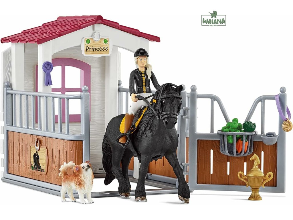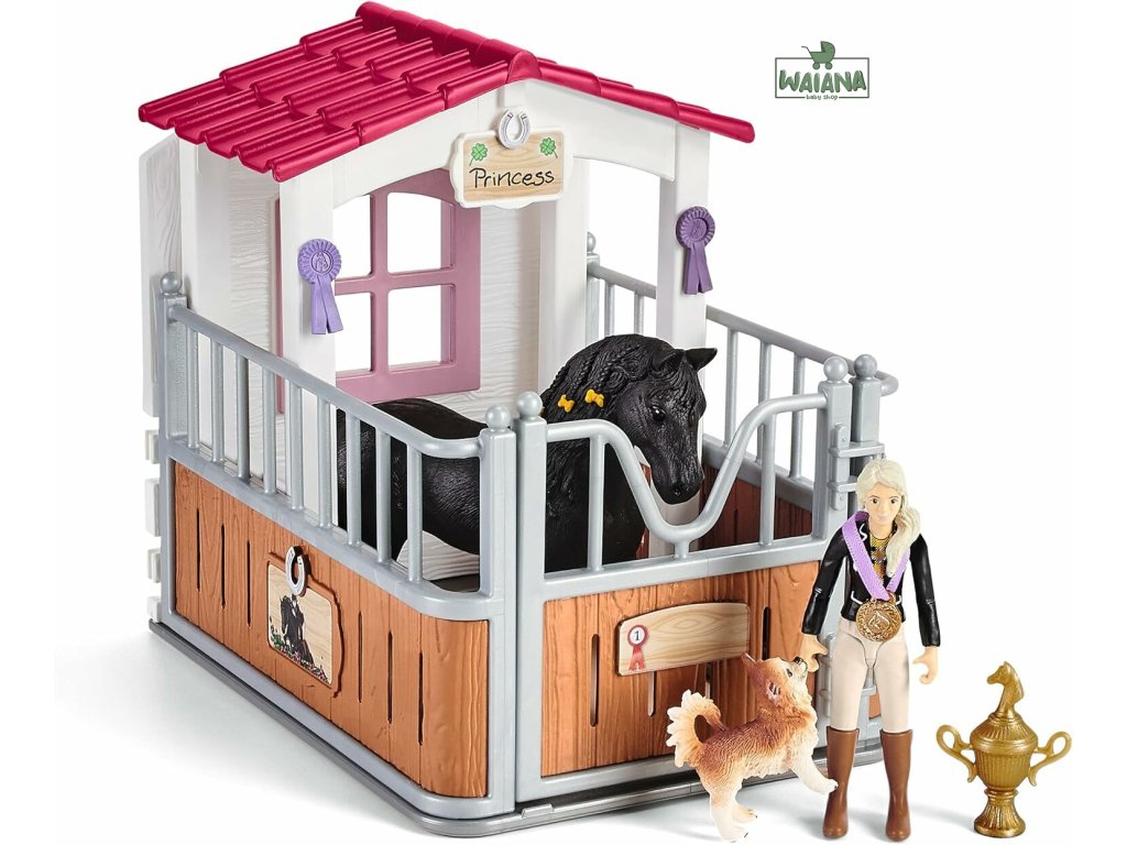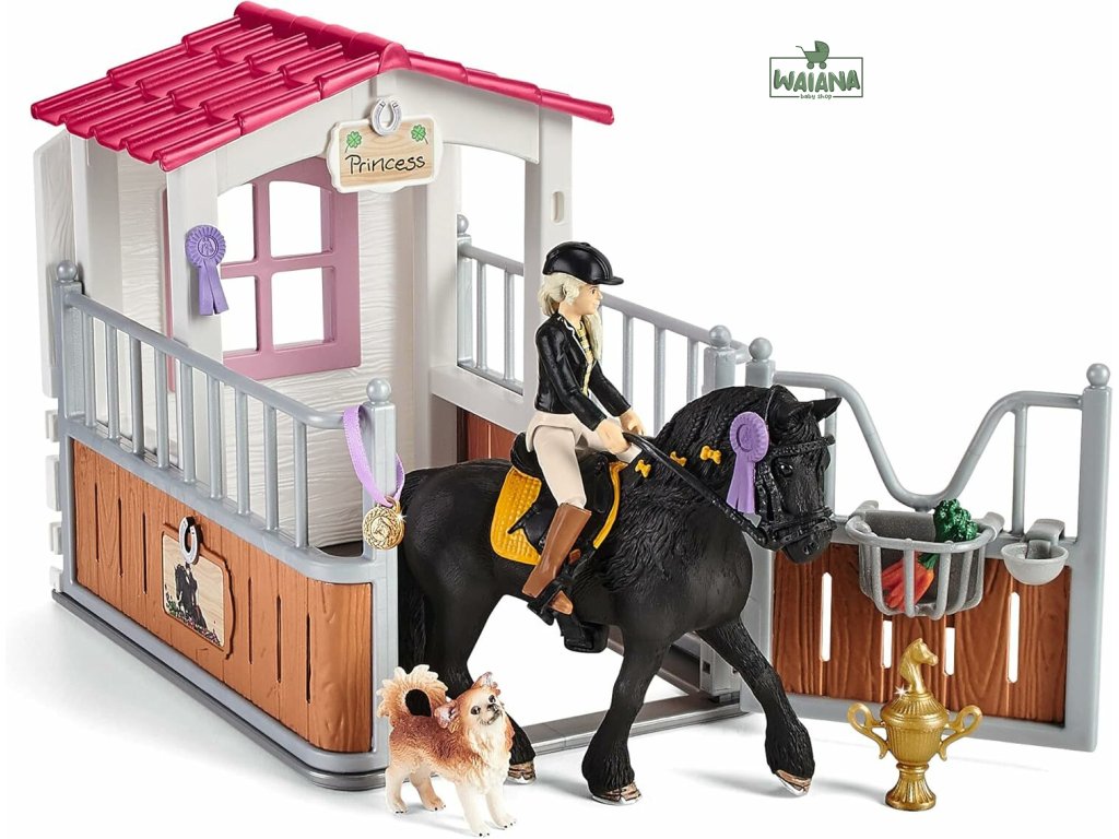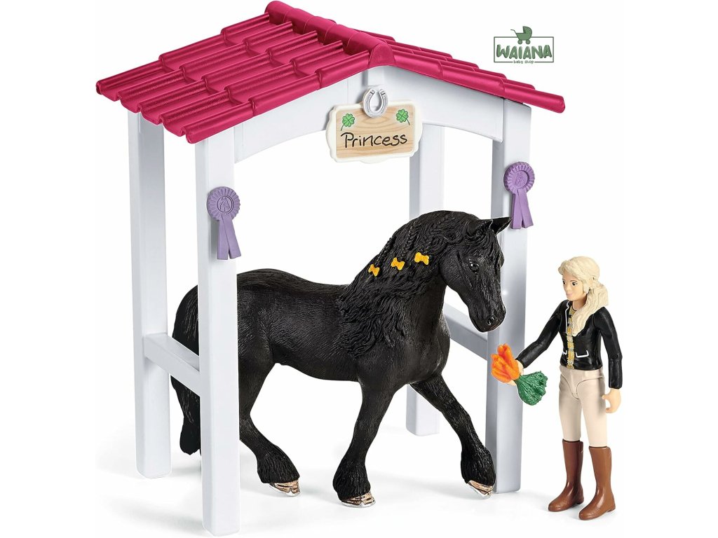 Schleich Malá stajňa s jazdkyňou Tori a kobylou Princess