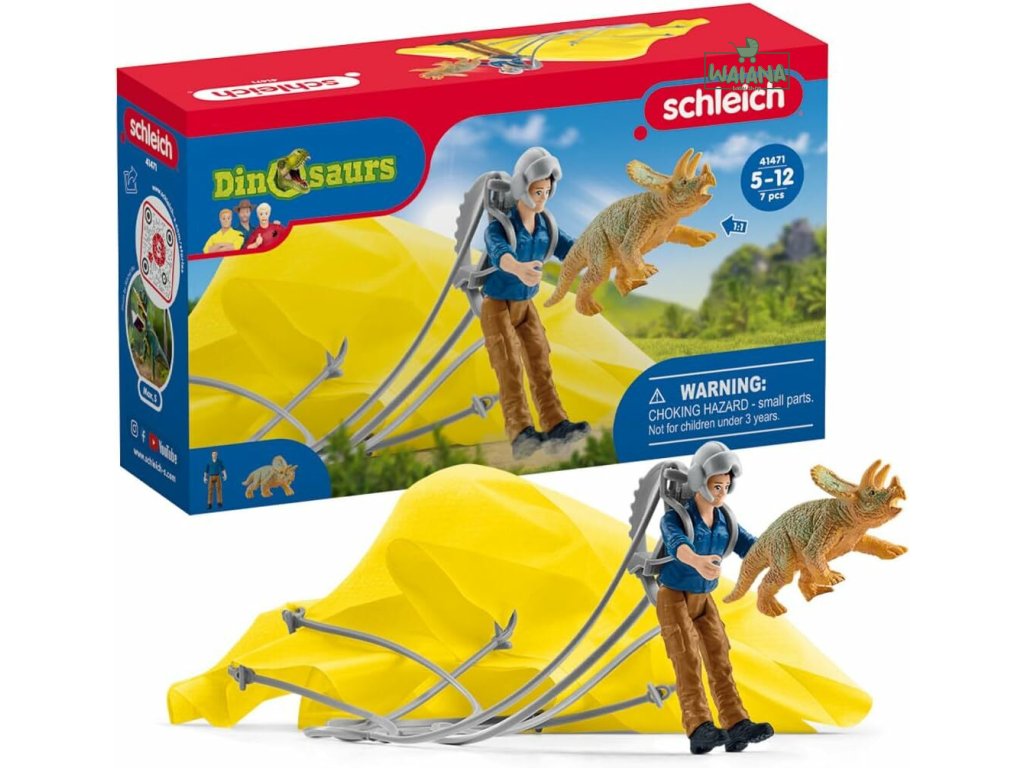 Vydajte sa na vzrušujúcu záchrannú misiu s dinosauriou parašutistickou jednotkou Schleich! Keď sa malé mláďa triceratopsa zase stratí alebo dostane do nebezpečenstva, je čas na zásah odvážnych záchranárov.