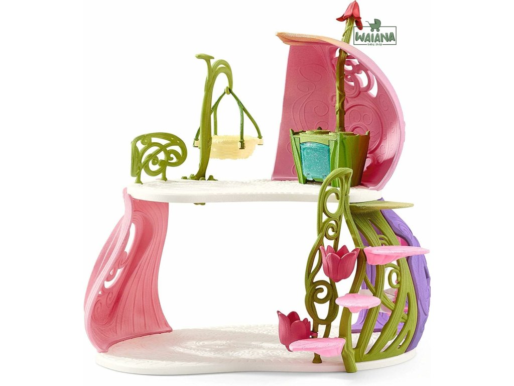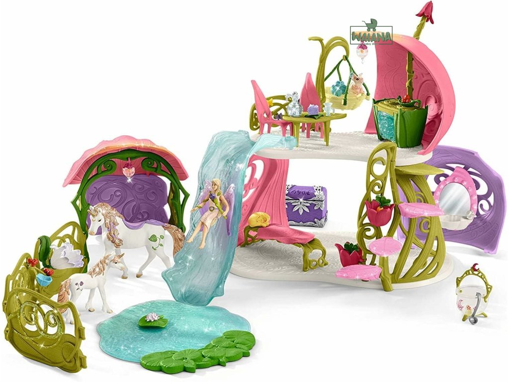 Schleich Set trblietavý kvetinový dom s jednorožcom a jazierkom je očarujúci svet plný fantázie a mágie. Tento jedinečný domček je ideálnym útočiskom pre všetky malé víly a jednorožce.
