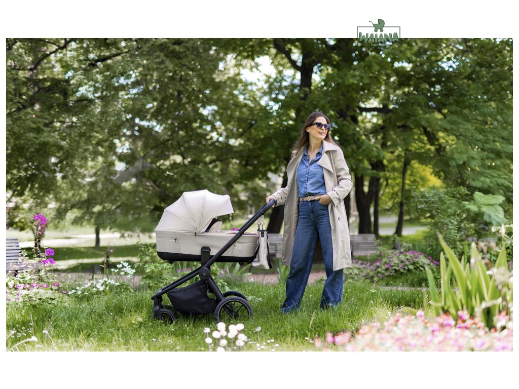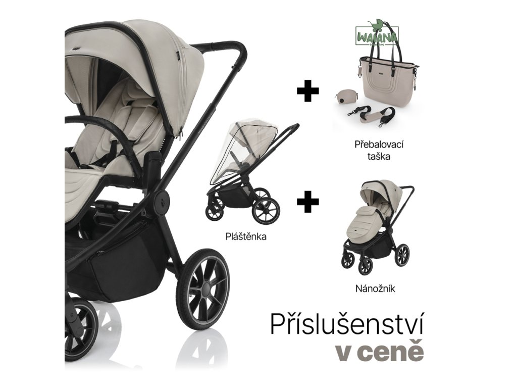 Medzi praktické detaily patrí magnetická pracka pásu, uzatvárateľný košík, odklápacia hrazda a madlo na prenášanie zloženého kočíka. Kočík sa jednoducho skladá a prenáša aj jednou rukou. V balení nechýba pláštenka, nánožník a štýlová prebaľovacia taška.