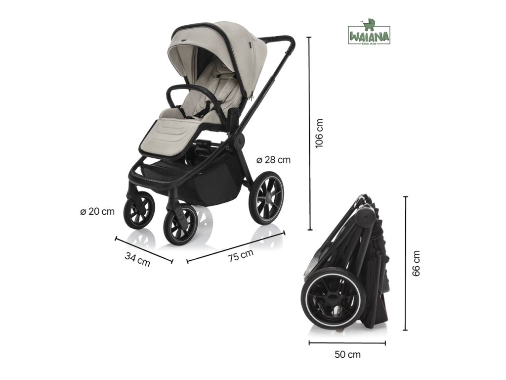• Rozmery zloženého kočíka (š × v): 50 × 66