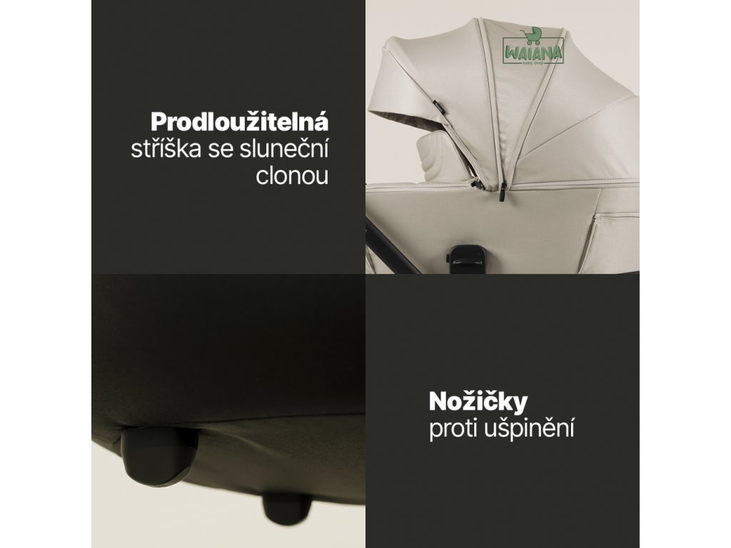 predĺžiteľná strieška s vetruodolnou clonou. Vanička je ideálna do každého
