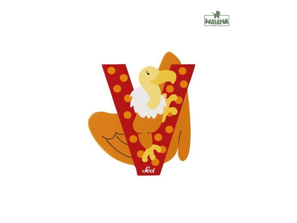 SEVI Písmenko V - Zvieratko Nádherné drevené ručne maľované písmenká. Písmená sú navrhnuté a vyrobené podľa výrobcov hračiek Sevi, ktorých možno považovať za tvorcov a výrobcov tradičných talianskych hračiek už od roku1831.