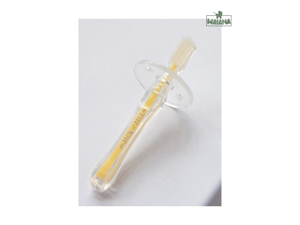 Produkt Jack N’Jill silikónová zubná kefka je unikátny, pretože je jedným kusom pevného lekárskeho silikónu – až po samé štetinky. Bol navrhnutý ako zubná kefka, nie krúžok na prerezávanie zubov, takže sa treba vyhnúť jeho žuvaniu.