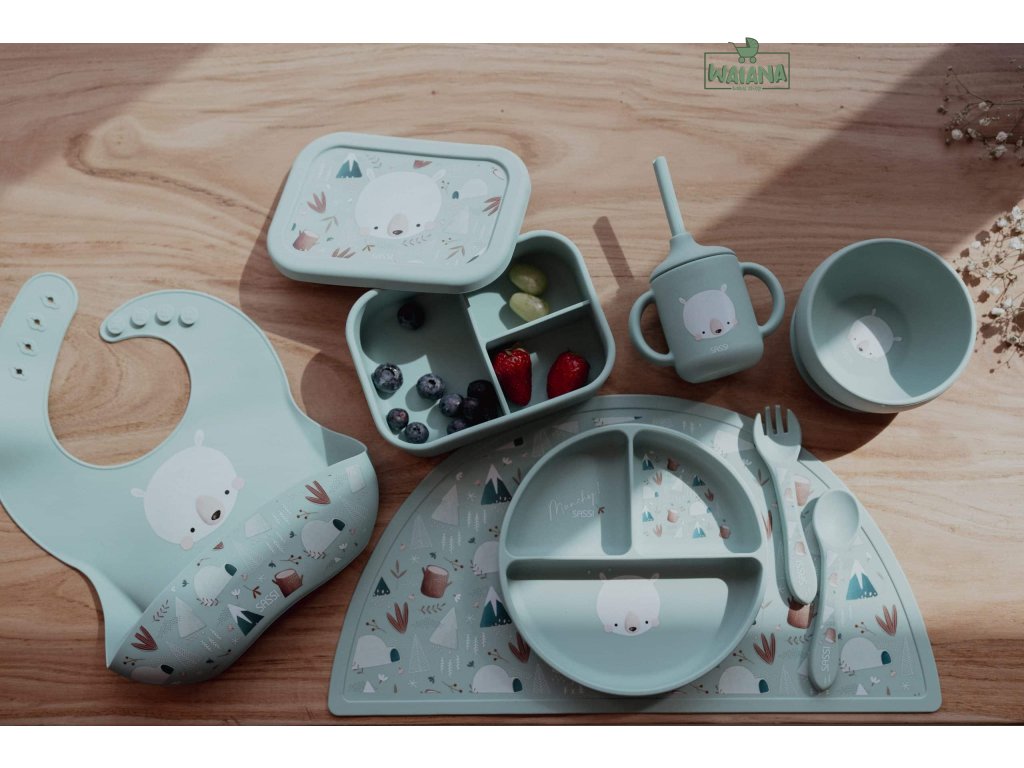 Vyrobené zo 100 % potravinárskeho silikónu. Jedálenské súpravy SASSI neobsahujú škodlivé chemikálie ako BPA, PVC a ftaláty, čím zaručujú, že jedlo vášho dieťatka bude podávané v čo najčistejšom a najbezpečnejšom prostredí. Mäkká a hladká štruktúra silikónu robí každý kúsok príjemným na dotyk, zatiaľ čo pružnosť materiálu zaisťuje odolnosť voči nevyhnutným nárazom a pádom, ktoré sprevádzajú detské stolovanie. Naše silikónové výrobky spĺňajú prísne bezpečnostné normy EN14372.