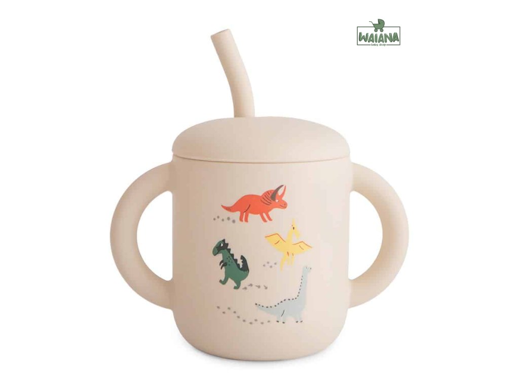 SILIKÓNOVÝ POHÁRIK SO SLAMKOU MUSHIE - DINOSAURS