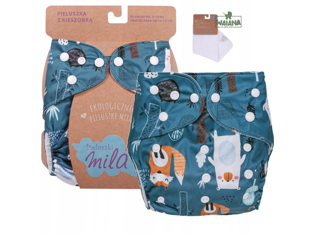 Balenie obsahuje plienkové nohavičky s potlačou alebo jednofarebné, sprievodný návod na používanie a 1x plienkovú vložku 3-vrstvového mikrovlákna.
