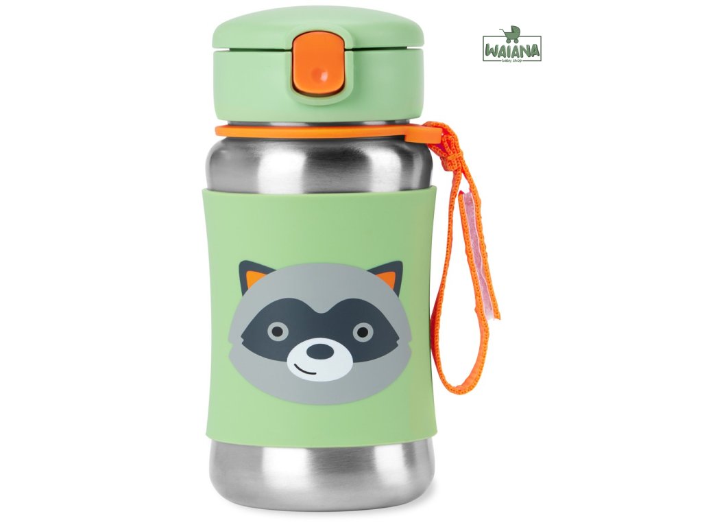 SKIP HOP Spark Style Fľaša so slamkou na vodu nerez Medvedík čistotný 12m+