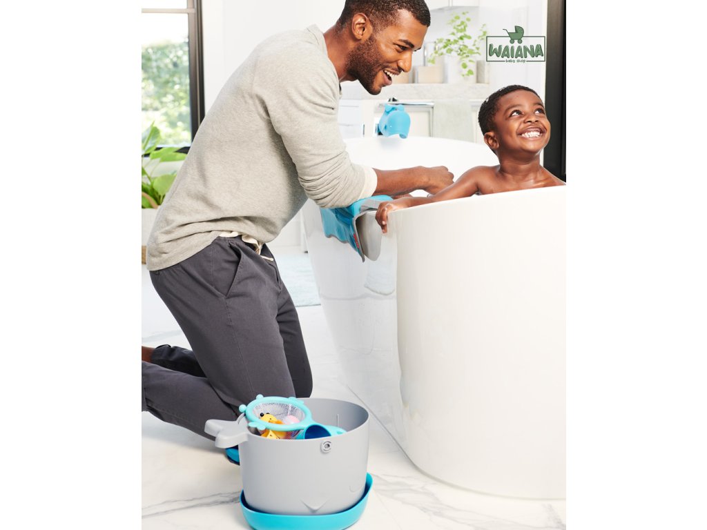 Majte všetky obľúbené hračky do vane vášho drobca usporiadané, v suchu a na dosah s naším veľkorysým vedierkom na hračky do vane. Roztomilý veľrybí dizajn s množstvom úložného priestoru, veľkými drenážnymi otvormi a samostatnou stojanovou základňou na zachytávanie prebytočnej vody.