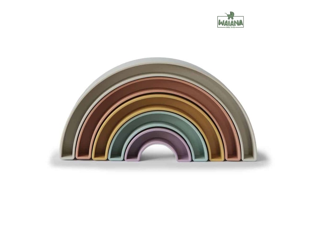 Krásna a hravá dúhová skladačka v rôznych farebných prevedeniach od Mushie!