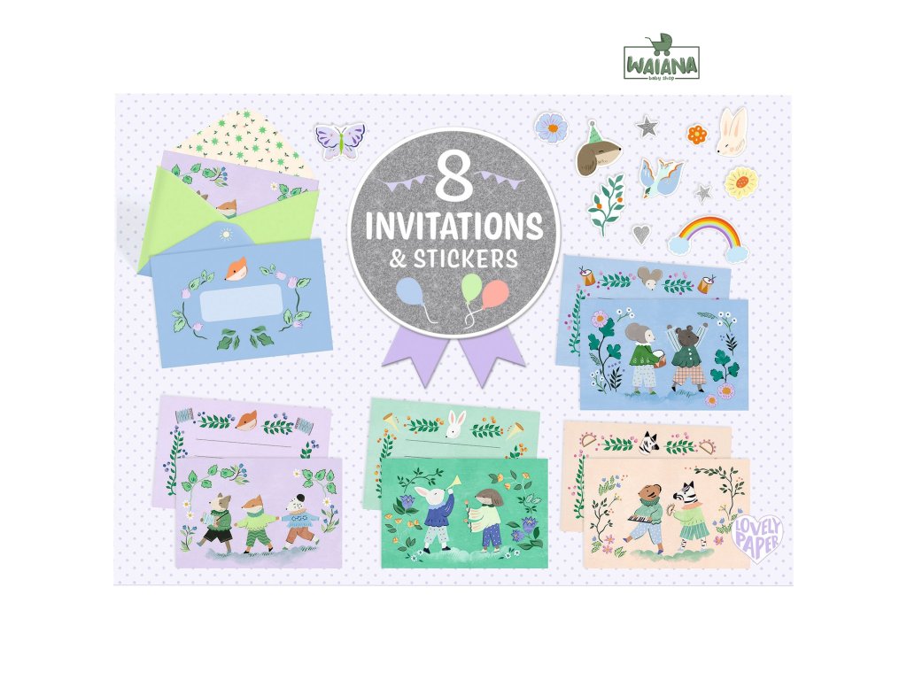 Sprievod zvierat: 8 pozvánok & samolepkyVeselá sada na oslavy a tvorenieSprievod zvierat: 8 pozvánok a samolepiek je zábavná sada pre deti, ktorá obsahuje 8 farebných pozvánok so zvieracou témou, 8 ilustrovaných obálok a samolepky na ich ozdobenie. Sada je ideálna na narodeninové oslavy, tematické párty alebo na tvorivé aktivity.Dizajn má metalické detaily a matnú potlač.Prečo si vybrať sadu od Djeco8 pozvánok so zvieracím motívomsamolepky na ozdobenieskvelé na oslavy a tvorivé hryObsah balenia8 kusov pozvánok s ilustráciami8 obálok2 hárky samolepiek na zdobenie