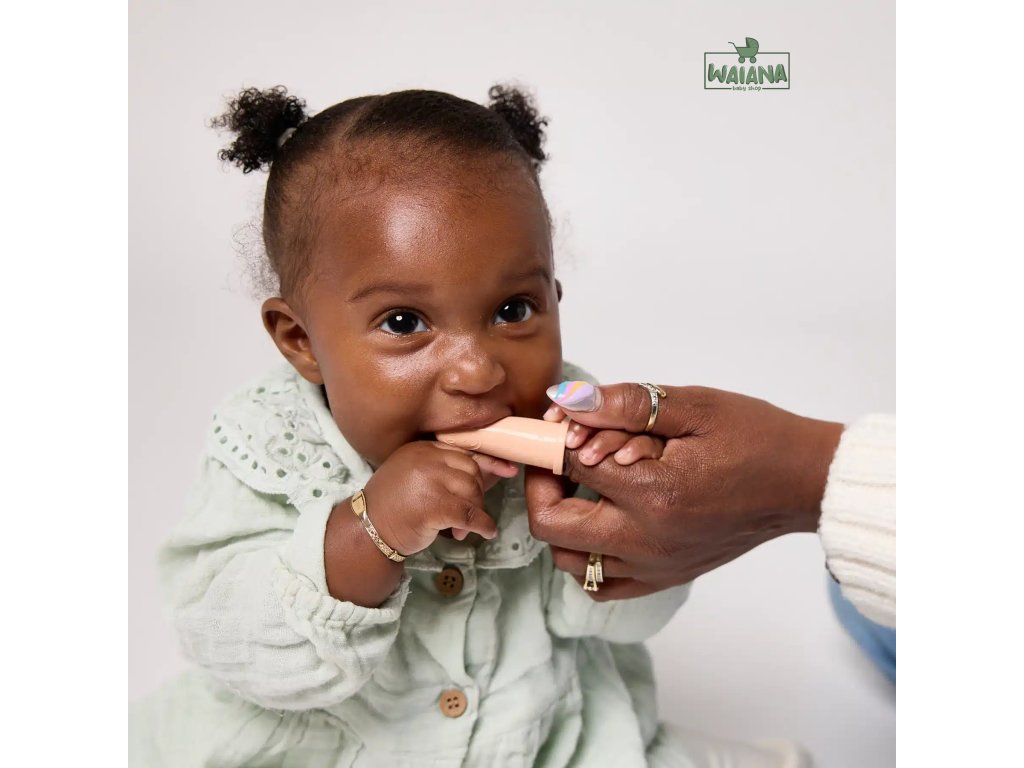 Broskyňové hryzadlo v tvare opičky je zábavné, flexibilné a vďaka textúrovaným výstupkom rýchlo zasiahne miesto bolesti. Plochí opičí kamaráti sú malí, ľahučkí a ideálni do drobných detských ručičiek – skvelí na cesty alebo do tašky. Silikónové prstové kefky sú ideálnou prvou zubnou kefkou pre bábätko – jemné a šetrné k ďasnám.
