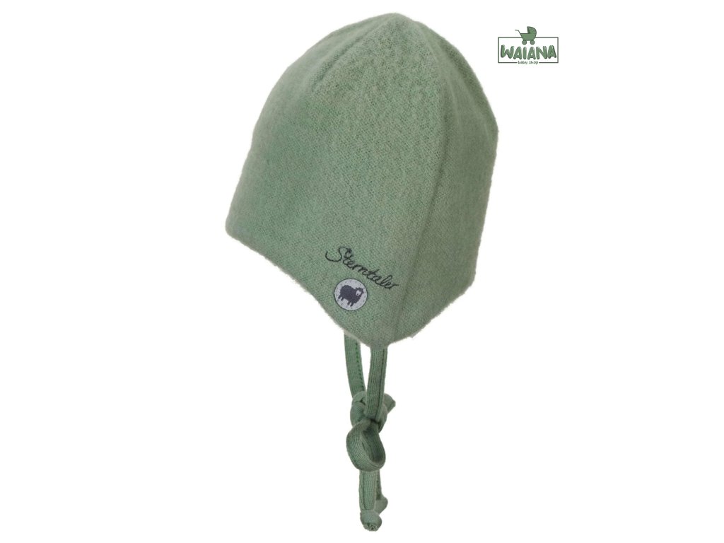 STERNTALER Čiapka na zaväzovanie vlnená podšitá MERINO green uni 37 cm -2-3 m