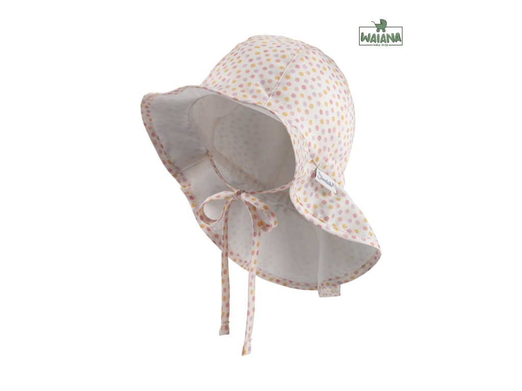 Mierne zvlnený okraj klobúčika chráni oči pred oslňujúcim slnečným žiarením. Klobúčik je vybavený šnúrkami na zaväzovanie pod krkom, čo ocení každá malá princezná, ktorá nechce aby jej klobúčik padal z hlavičky. Mierne zvlnený okraj má ďalej vzadu veľkorysú ochranu krku a rovnomerne zakrýva uši a krk, pričom chráni aj oči pred príliš ostrým slnečným svetlom.