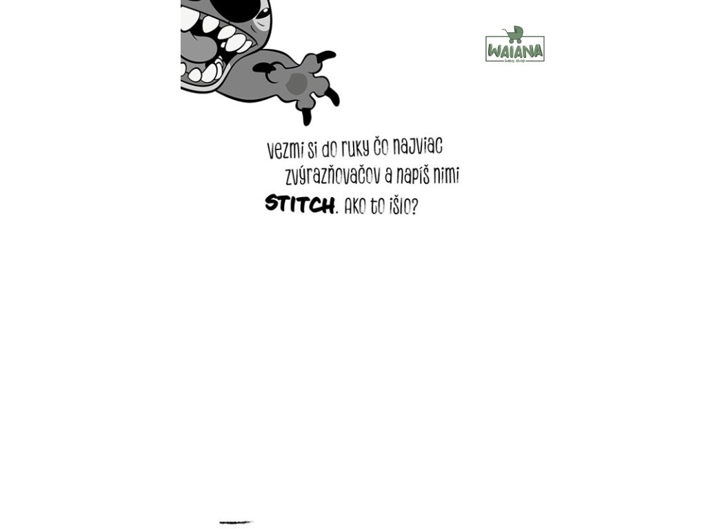 Stitch - Deštrukčný denníkDenník, ktorý má pravidlá narubyKlasické denníky ti prídu nudné? Stitch to vidí inak! Tento deštrukčný denník je plný bláznivých úloh, ktoré ťa povzbudia k tvorivosti, zábave a trochu aj chaosu. Kresli nohami, namoč stránky do vody, vytrhni ich a použi ako baliaci papier – v tejto knihe sa pravidlá nepočítajú. Je to denník, ktorý konečne robí radosť. Pre všetkých malých rebelov a veľkých kreatívcov – Stitch je pripravený, a ty?