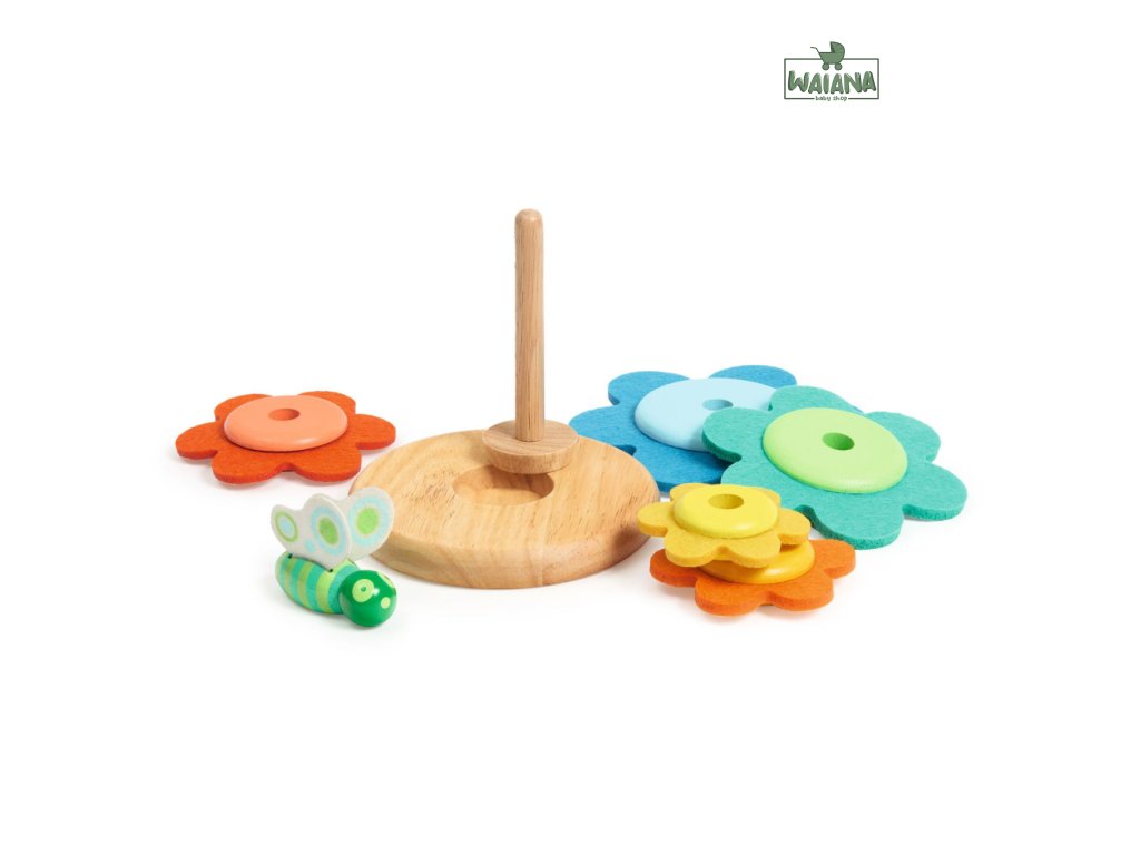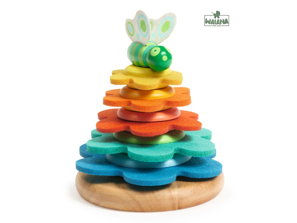 Stohovacia hračka Maslový kvet Drevená hračka pre batoľatá na rozvoj jemnej motoriky Maslový kvet je zábavná drevená a plstená hra na skladanie, ideálna pre batoľatá. Táto kreatívna hra sa skladá z 5 farebných krúžkov, ktoré deti môžu zoradiť od najväčšieho po najmenší, pričom na vrchole pyramídy je umiestnený roztomilý motýľ. Hračku je možné jednoducho uchopiť vďaka robustným dreveným a plsteným prstencom, čo zlepšuje motorické zručnosti detí. Na dokončenie hry deti objavia prekvapenie pod najväčším prsteňom, čo pridáva do hry ďalší vzrušujúci element.Hračka Maslový kvet je ideálna pre deti od 18 mesiacov, podporuje jemnú motoriku, koordináciu oko-ruka a predstavivosť.