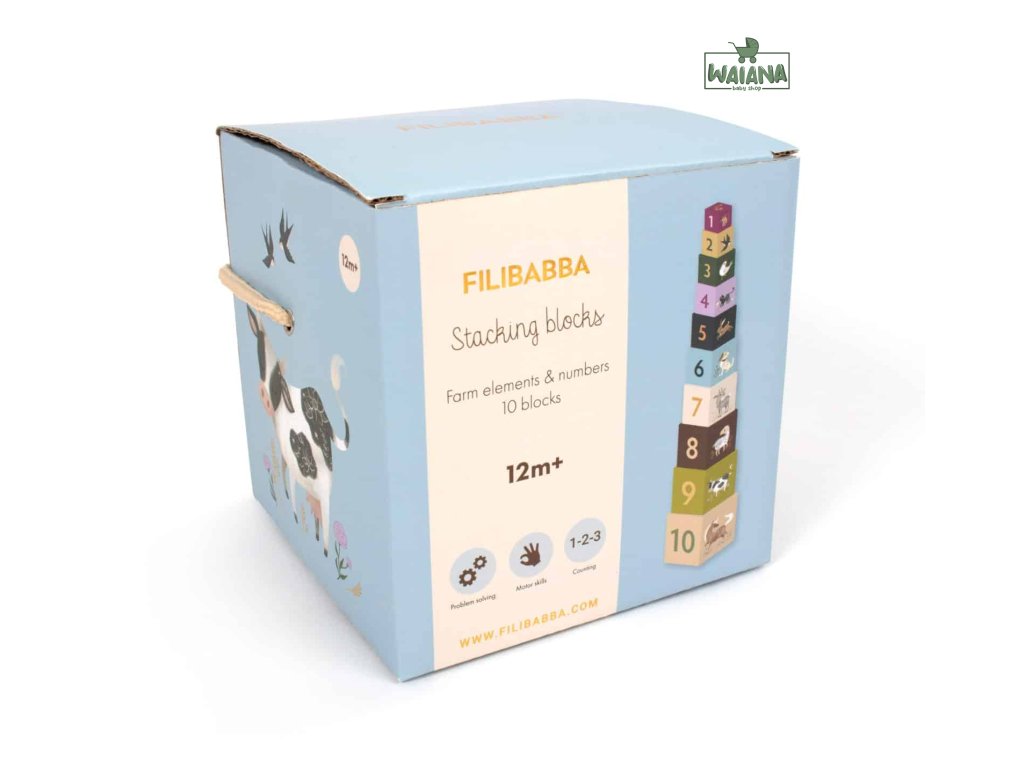 Skladacie kocky FILIBABBA pomôžu vašej ratolesti napočítať do desať a zároveň mu umožnia objavovať hospodárske zvieratá. Stohovacie kocky sú vzdelávacie aj zábavné: zlepšujú jemnú aj hrubú motoriku, koordináciu ruka-oko a rovnako tak zručnosti pri riešení problémov. Farebné ručne kreslené ilustrácie určite podnietia zvedavosť vášho dieťaťa o hospodárskych zvieratách a prírode.