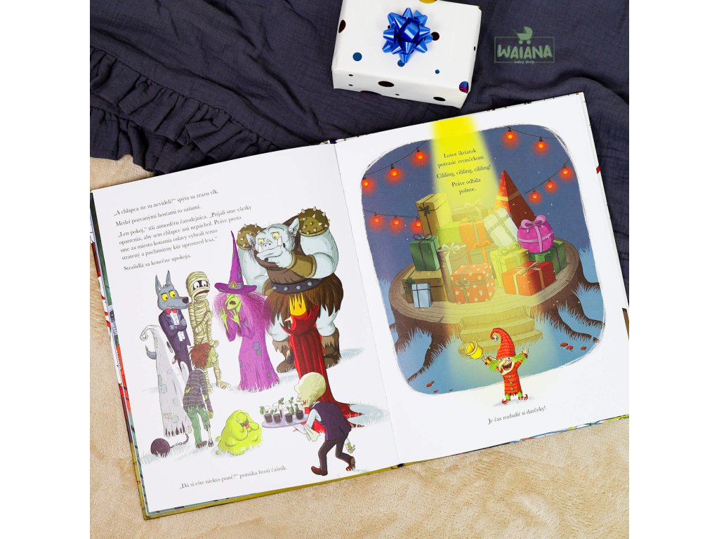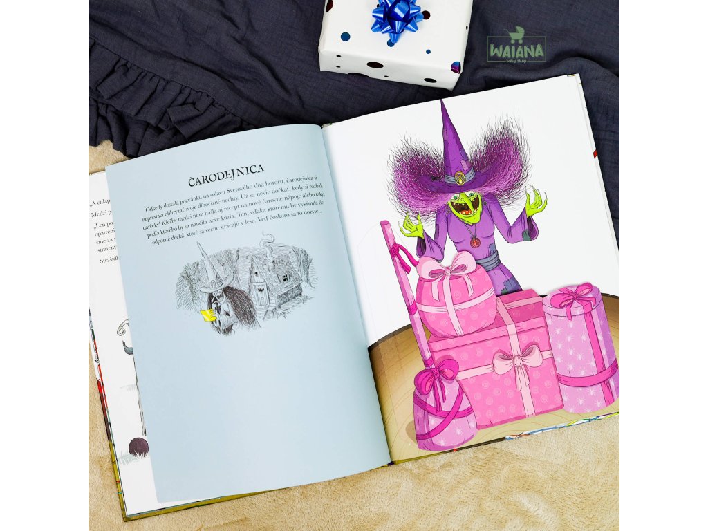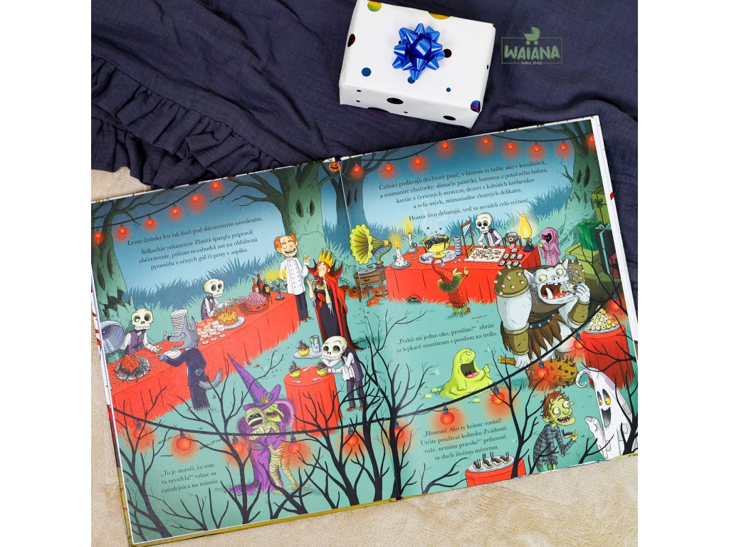 Strašidelný darčekZábavná knižka plná strašidelných darčekov pre najstrašidelnejšie strašidlá na svete.Svetový deň hororu prišlo osláviť deväť slávnych strašidiel. Pri tejto príležitosti pripravil hostiteľ, vychýrený šéfkuchár Lojzko Pripečený, svojim vzácnym hosťom to najlepšie občerstvenie. Začítajte sa do veselo ilustrovanej knižky, kde vás pod každým otváracím okienkom čaká nové prekvapenie!Polnočné rozbaľovanie darčekov je plné prekvapení a skvelých darčekov ušitých na mieru každému hrôzostrašnému kamarátovi.