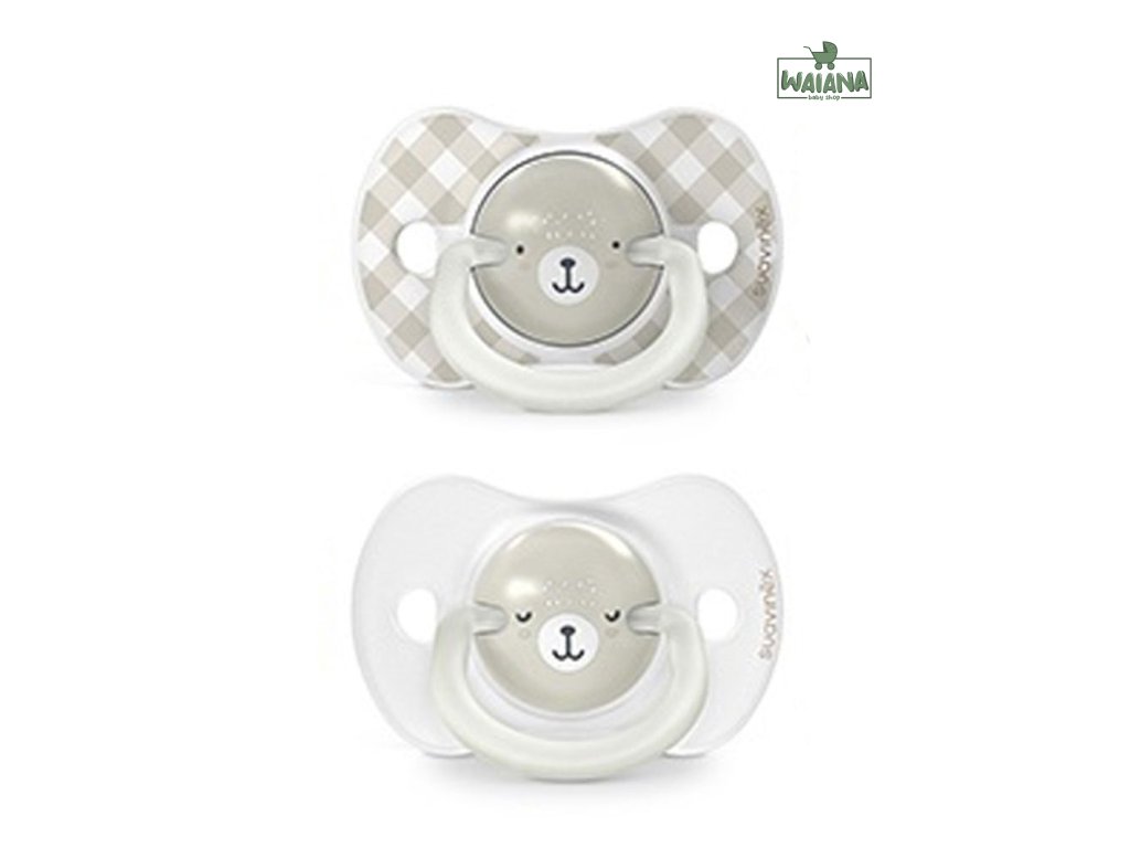 SUAVINEX | Cumlík DEŇ&NOC fyziologický silikón WILD & FREE 6-18 m - 2 ks - sivé