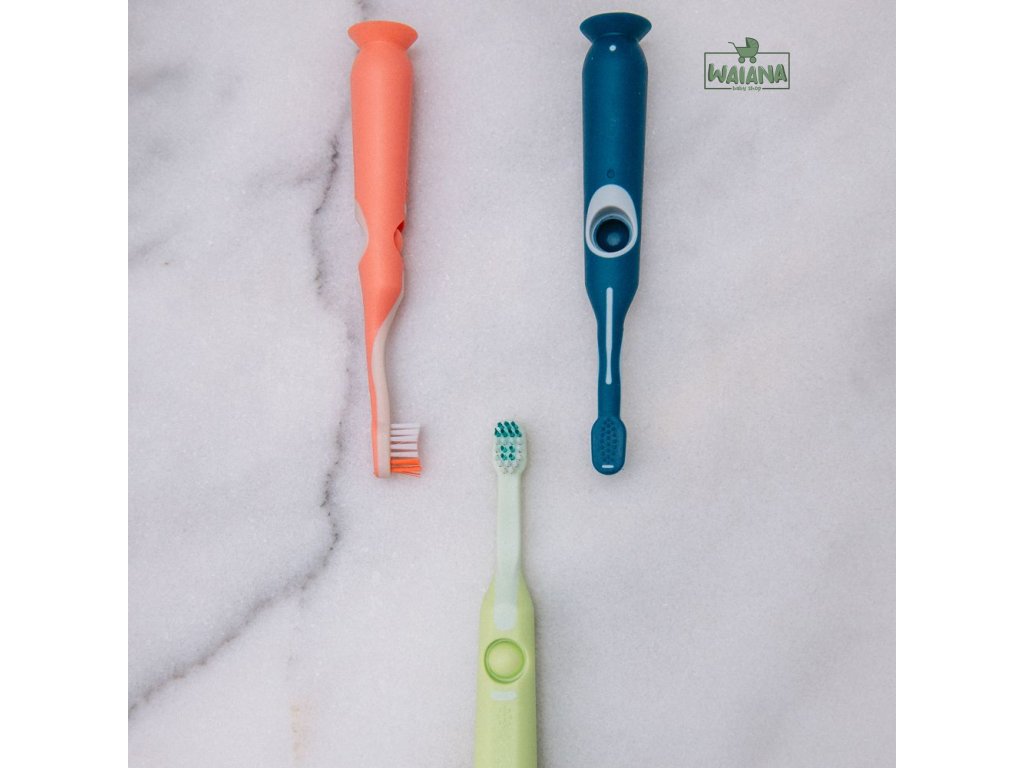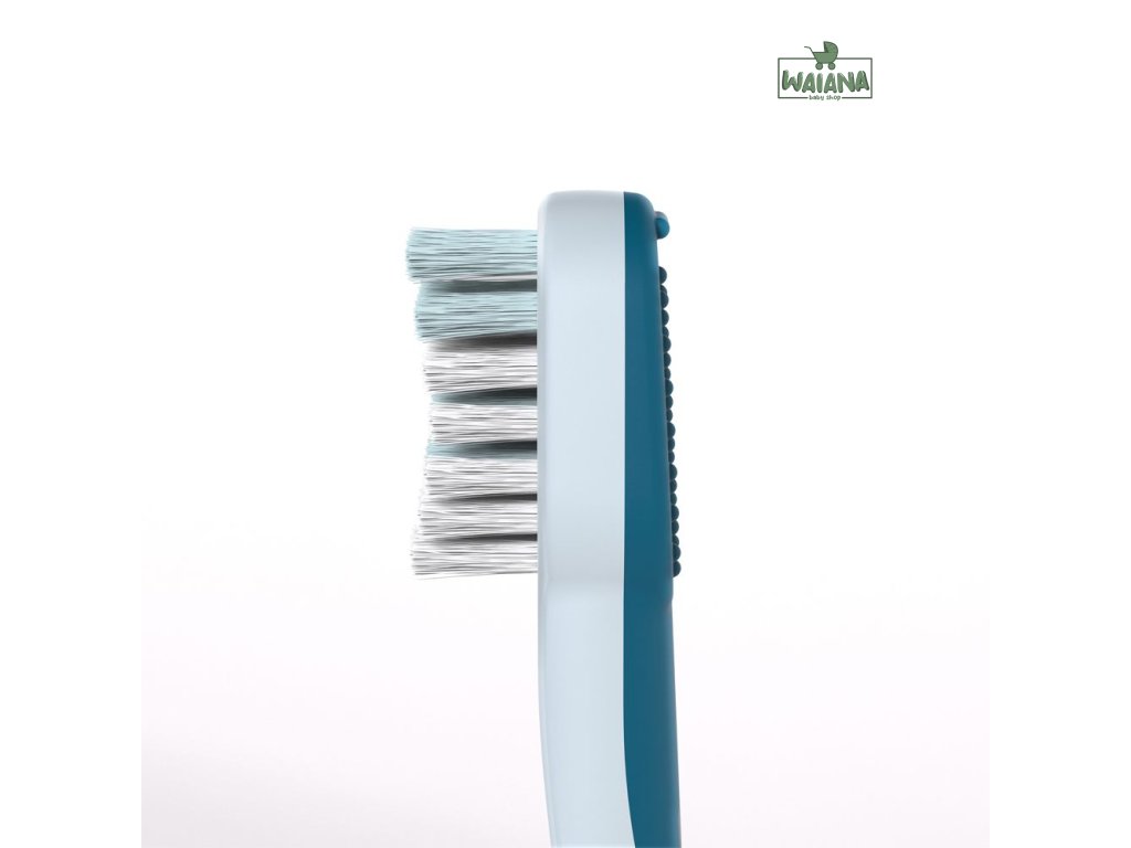 - Rukoväť s proti sklzovým povrchom a mäkkou časťou sa dobre drží aj malou detskou rukou - ideálnou na prvé samostatné čistenie zúbkov.