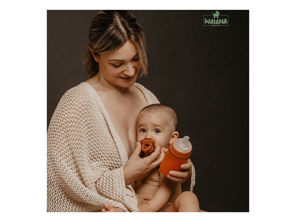 - Umožňuje väčšiu prispôsobivosť, pretože novorodené dieťa bude spočívať svojimi perami na stred základne, zatiaľ čo staršie deti s väčšími ústami budú môcť svoje pery priblížiť až k vonkajšej hrane, pričom celý cumlík vo vnútri sa nachádza vo vnútri úst.