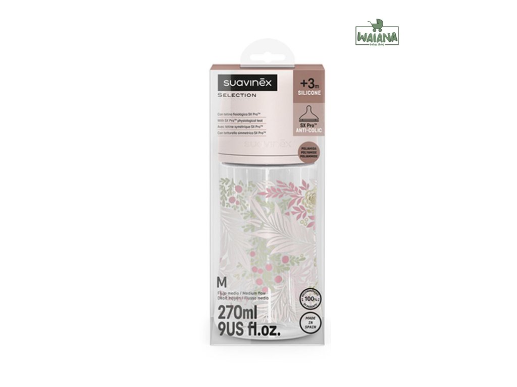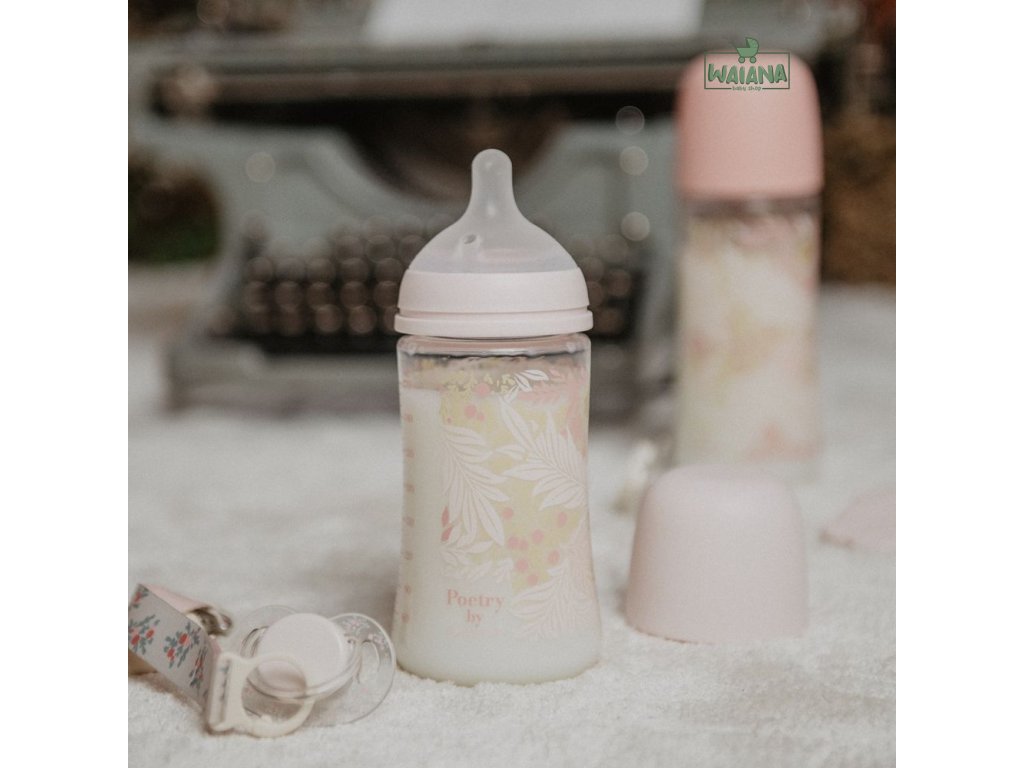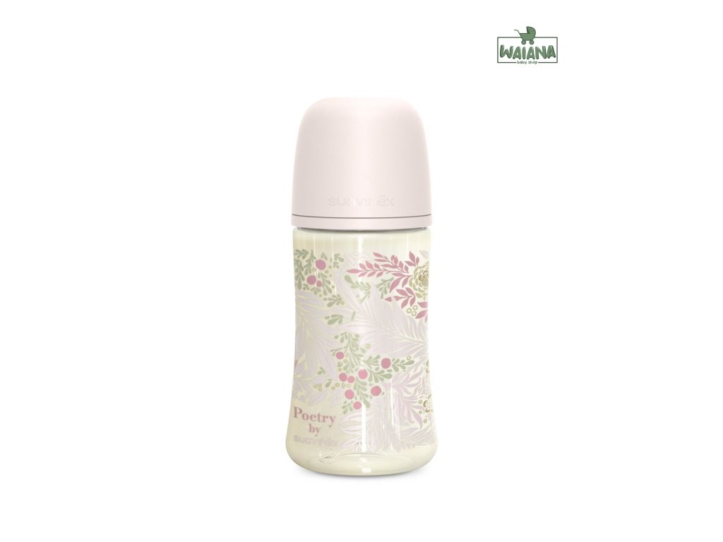 SUAVINEX | Dojčenská fľaša POETRY 270ml FYZIOL PRŮTOK M - ružová