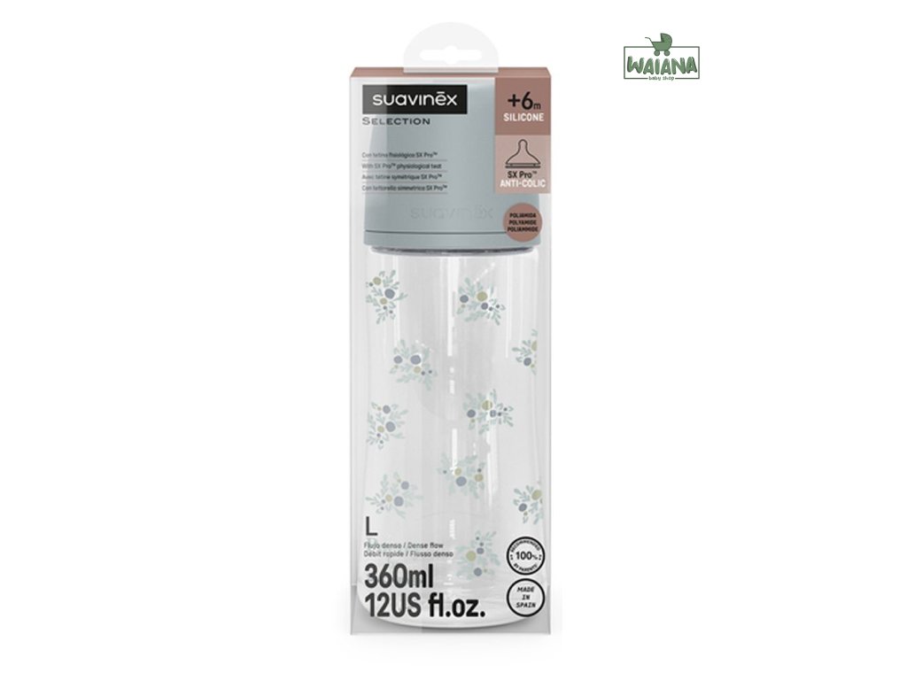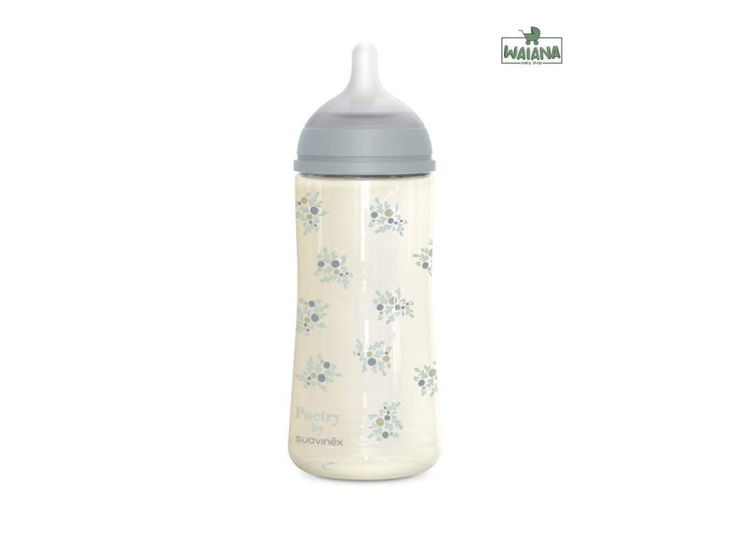 SUAVINEX | Dojčenská fľaša POETRY 360ml FYZIOL PRŮTOK L - modrá