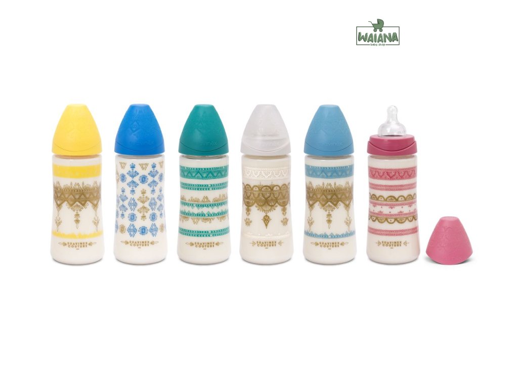 Nové prekrásne priezračné a nadčasové materiály radu Premium Couture 2018 - fľaše, cumlíky a klipy na cumlíky nesú prvky kombináciou s nadčasovými materiálmi a detailmi inšpirovanými poslednými trendmi v šperkárstve. Priesvitnosť, pozlátený povrch a nádherné zlaté aplikácie rady Premium Couture 2018 Vás uchvátia! Zlaté odtiene vytvárajúce originálne osobité vzory kombinovateľné spolu s klipmi a cumlíky radu Premium Couture 2018.