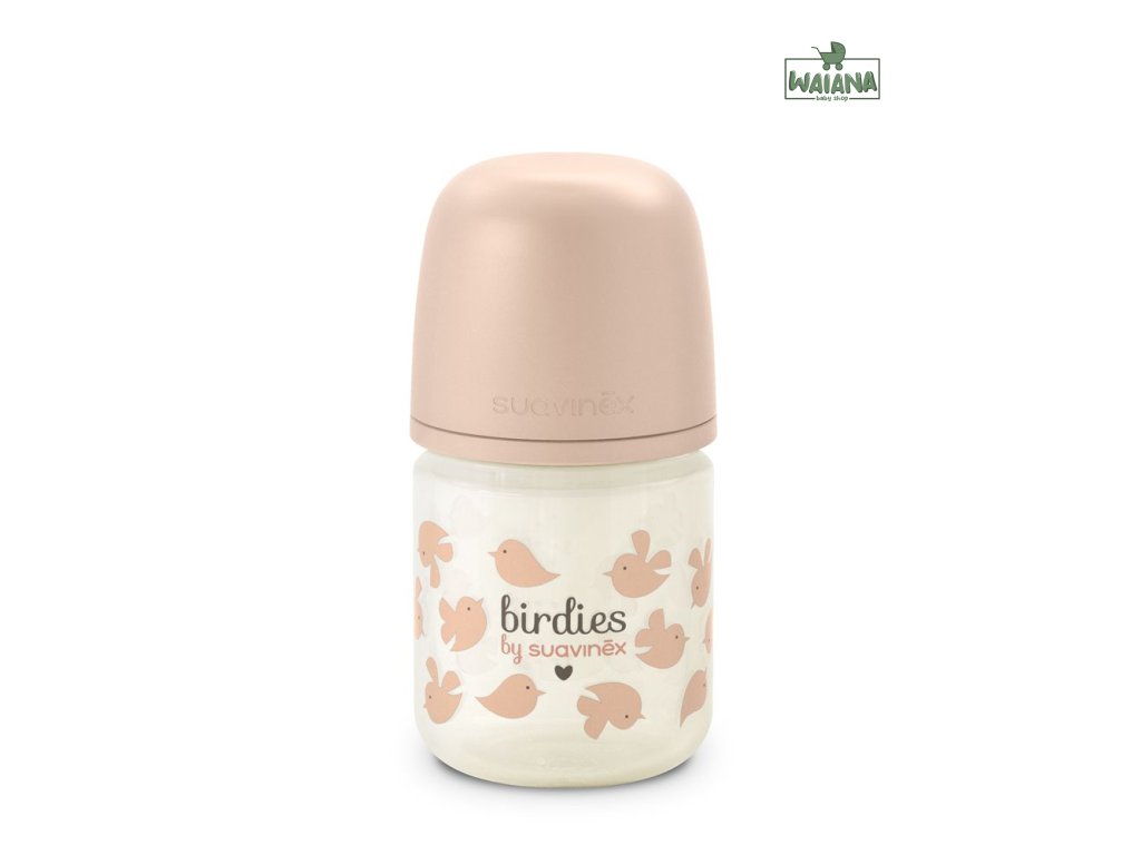 SUAVINEX | Fľaša SKLO BIRDIES 120 ml fyziologická SX PRO +0 SF - ružová