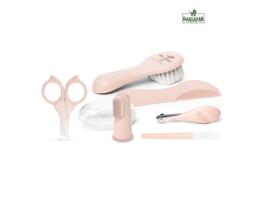 Praktická hygienická sada produktov pre starostlivosť o dieťa rady BIRDIES značky Suavinex obsahuje šesť základných pomôcok potreby pre každodennú starostlivosť o detské vlásky, nechty i ústa.